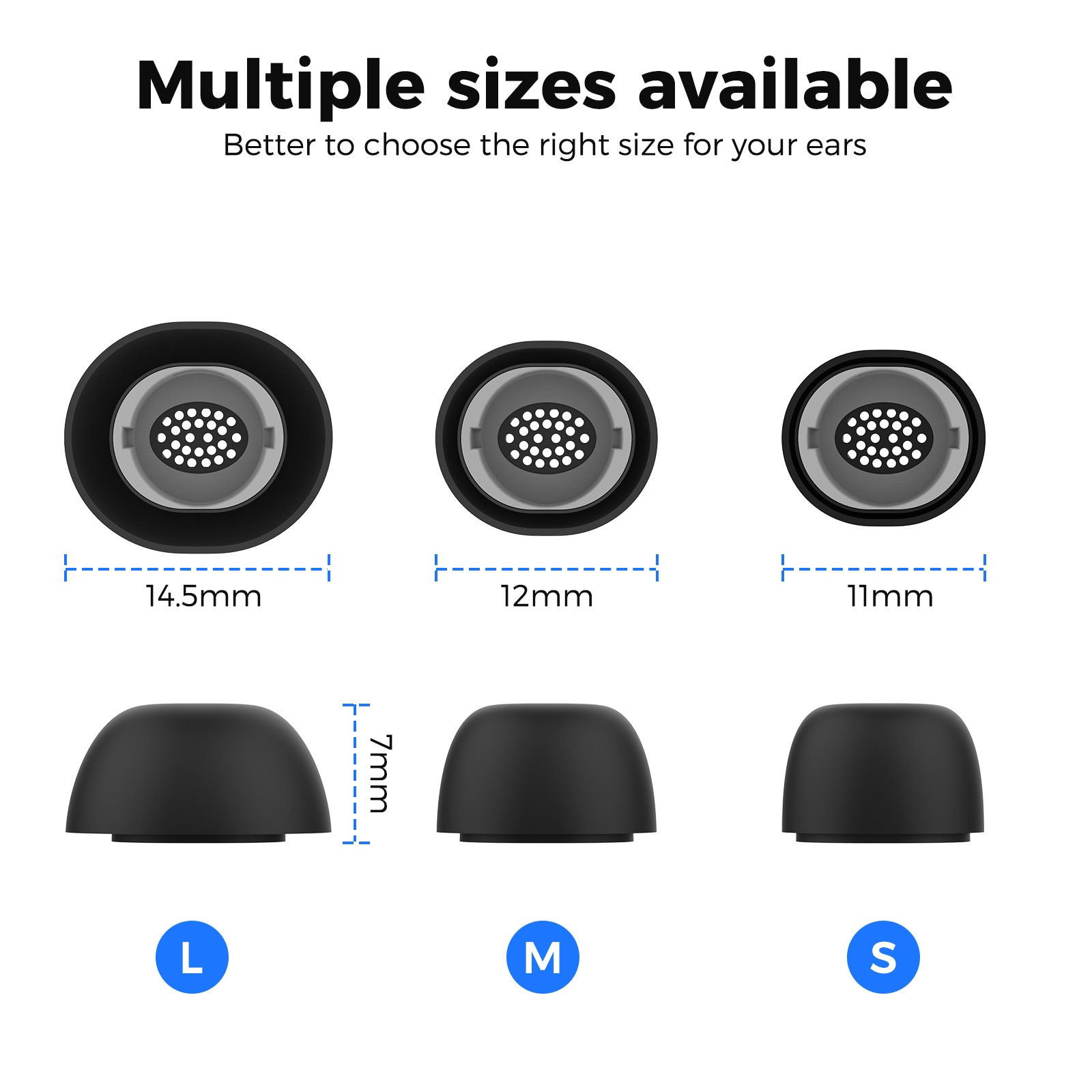 Förpackningen innehåller örontoppar i tre storlekar: S, M och L, så att du kan välja den storlek som passar just dina öron bäst.