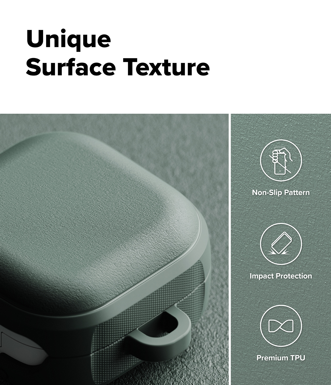 Tufft skal med MagSafe och karbinhake för Samsung Galaxy Buds 4 från Ringke. Skalet har en snygg design och ger ett bra stötskydd. Det är tillverkat av flexibel och slitstark TPU med en unik matt, granulär textur som både känns skön att hålla i och motverkar halkrisk och fingeravtryck.