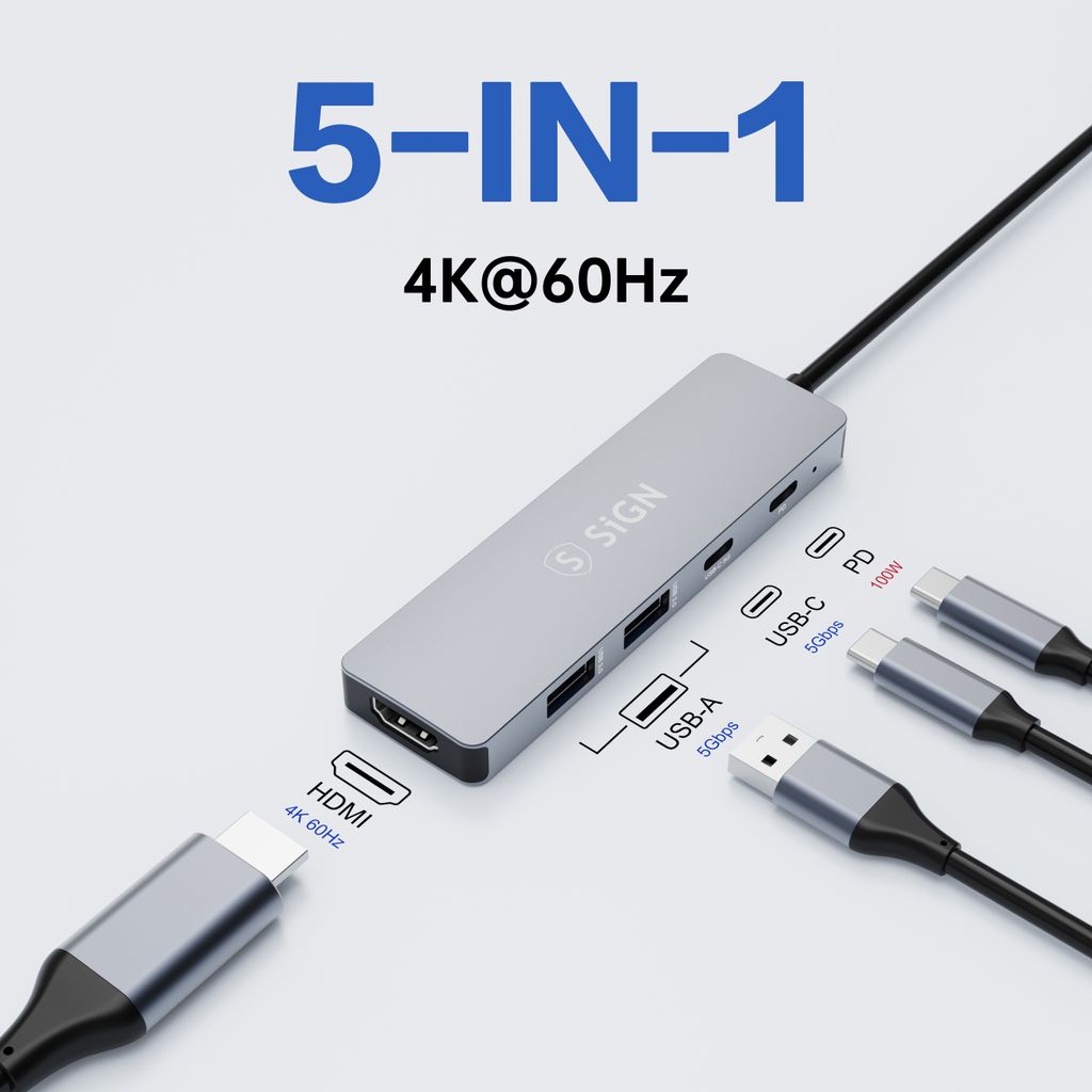 618815-i-1 Hub USB-C till 2x USB-A + HDMI + USB-C + PD Gråhttps://www.phonelife.se/laddare-sladdar/bild/adaptrar/5-i-1-hub-usb-c-till-2x-usb-a-hdmi-usb-c-pd-gra?channelCountry=SEhttps://www.phonelife.se/pub_images/original/0_-_-_5_-_-_1_s_laqLQZgDIjb6nt82PwC.jpgInStock209SEK/laddare-sladdar/bild/adaptrarSiGN<p>SiGN 5-i-1 USB-C HUB är en praktisk och kraftfull adapter som ger din laptop eller surfplatta fler anslutningsmöjligheter. Med flera portar kan du enkelt ansluta tillbehör, skärmar och laddning via en enda USB-C anslutning. HUB:en är utrustad med HDMI-utgång som stöder upp till 4K 60Hz för skarp och tydlig bild, vilket gör den idealisk för arbete, presentationer och streaming. De två USB-A-portarna samt USB-C-porten möjliggör snabb dataöverföring upp till 5Gbps för anslutning av exempelvis externa lagringsenheter och andra tillbehör. Med stöd för upp till 100W Power Delivery kan du samtidigt ladda din enhet snabbt och effektivt. Den kompakta och lätta designen gör adaptern enkel att ta med i väskan och perfekt för både kontor, hem och resor.</p>