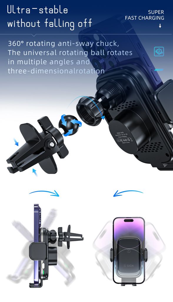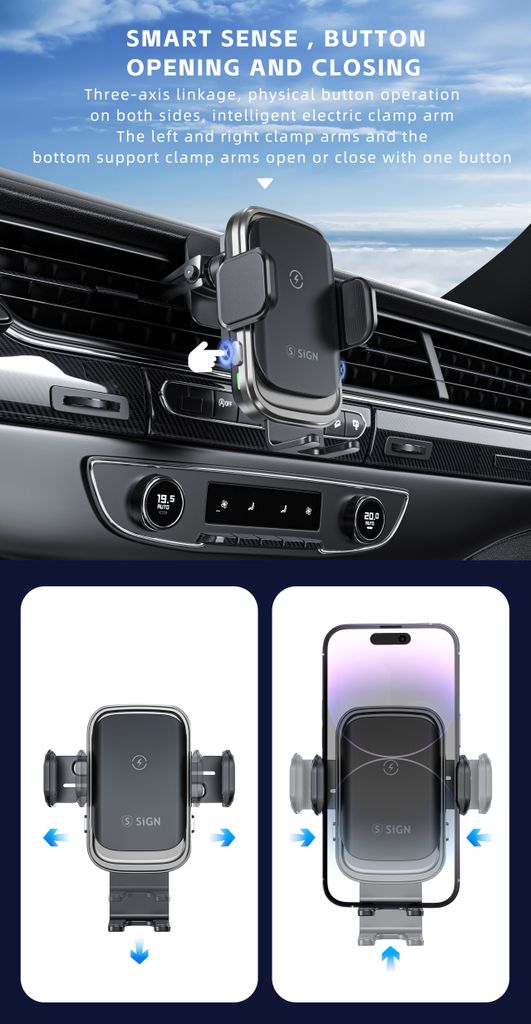 61846Mobilhållare för bil med trådlös laddning 15W Svarthttps://www.phonelife.se/laddare-sladdar/billaddare/qi-magsafe-billaddare/mobilhallare-for-bil-med-tradlos-laddning-15w-svart?channelCountry=SEhttps://www.phonelife.se/pub_images/original/1_-_-_18_-_-_002.jpgInStock249SEK/laddare-sladdar/billaddare/qi-magsafe-billaddareSiGN<p>SiGN mobilhållare för bil med trådlös laddning 15W är en smart och praktisk lösning för säker mobilanvändning under körning. Den integrerade Qi-laddningen gör att kompatibla smartphones laddas trådlöst samtidigt som de sitter stabilt i hållaren. Den inbyggda touchsensorn öppnar och stänger automatiskt klämmorna när du trycker, vilket gör det enkelt att placera eller ta bort mobilen med en hand. Mobilhållaren monteras smidigt i bilens ventilationsgaller och ger en stabil placering med bra överblick över skärmen under färd. Den kompakta designen i aluminiumlegering och glas ger både hållbar konstruktion och stilren finish. Perfekt för daglig användning i bilen när du vill kombinera mobilhållare och trådlös laddning i en praktisk lösning.</p>