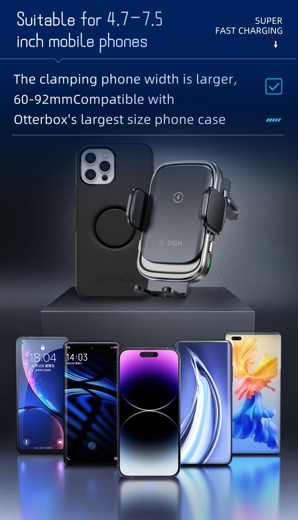 <p>- Mobilhållare för bil med trådlös Qi-laddning<br />