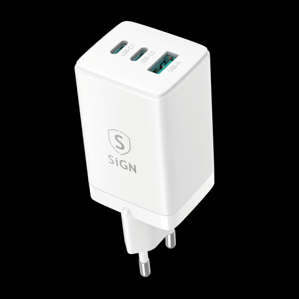 SiGN - GaN Snabbladdare 2x USB-C & 1x USB-A 65W Vit