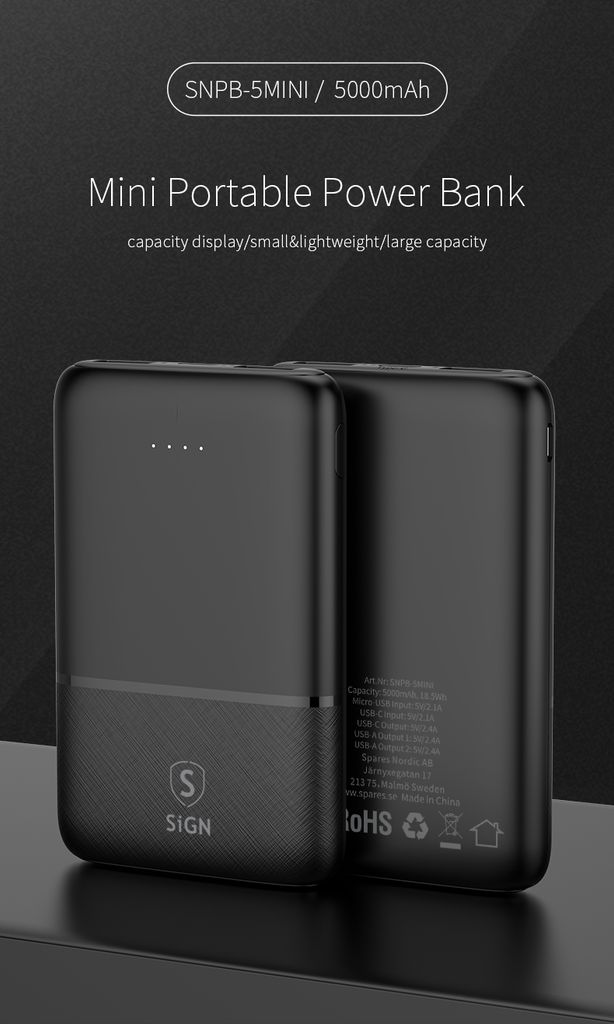 SiGN Mini Powerbank 5000mAh är en kompakt och praktisk laddningslösning för smartphones och andra USB-kompatibla enheter. Den tunna och lätta konstruktionen gör den enkel att bära med i fickan, väskan eller jackan, vilket gör den lämplig för daglig användning, resor och pendling. Batterikapaciteten på 5000mAh ger tillräcklig energi för att ladda din mobil vid behov och säkerställer att du har tillgång till extra ström när det behövs.