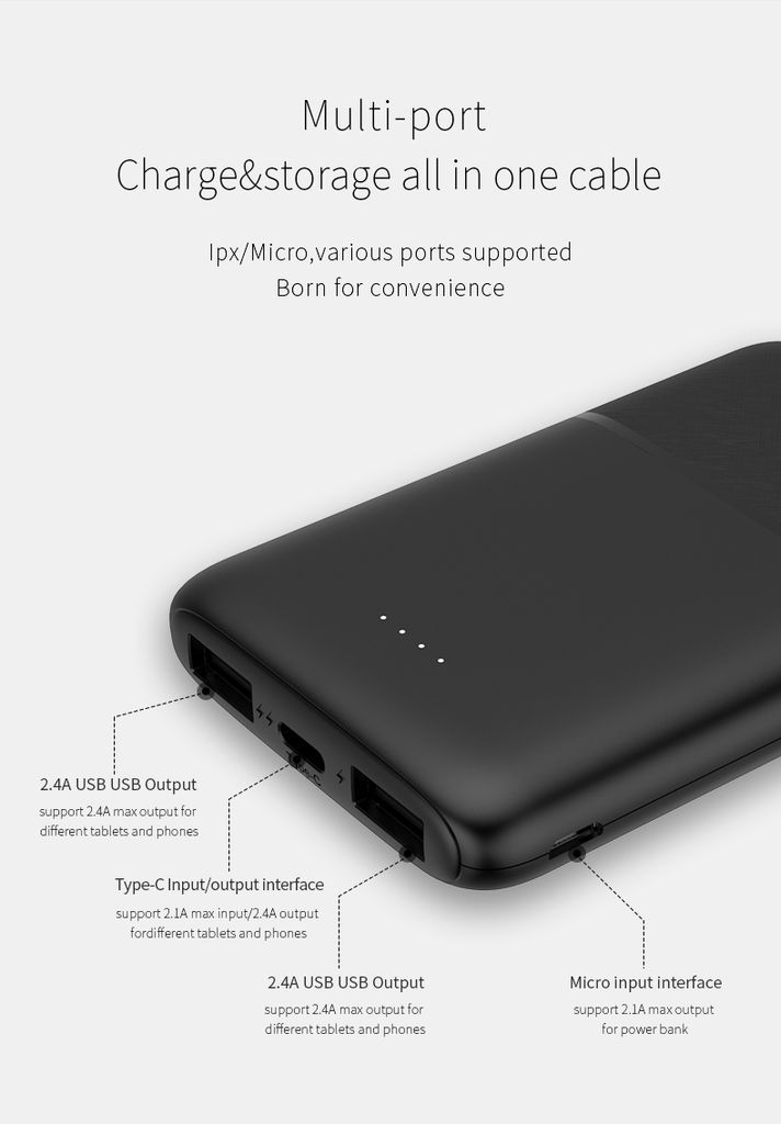 Powerbanken är utrustad med en USB-C-utgång och två USB-A-utgångar, vilket gör det möjligt att ladda tre enheter samtidigt. USB-C-porten används även f... Läs mer