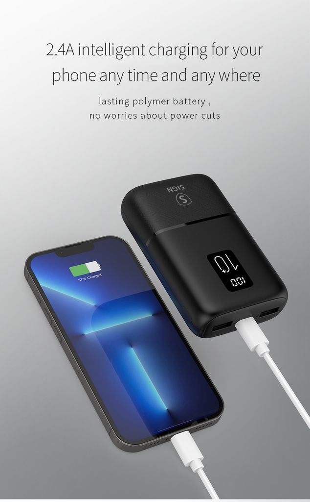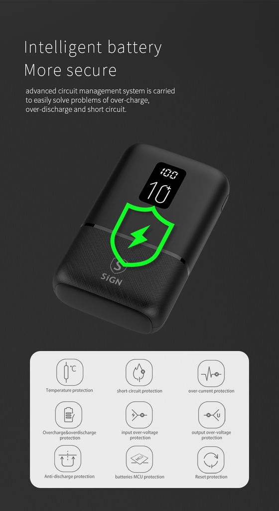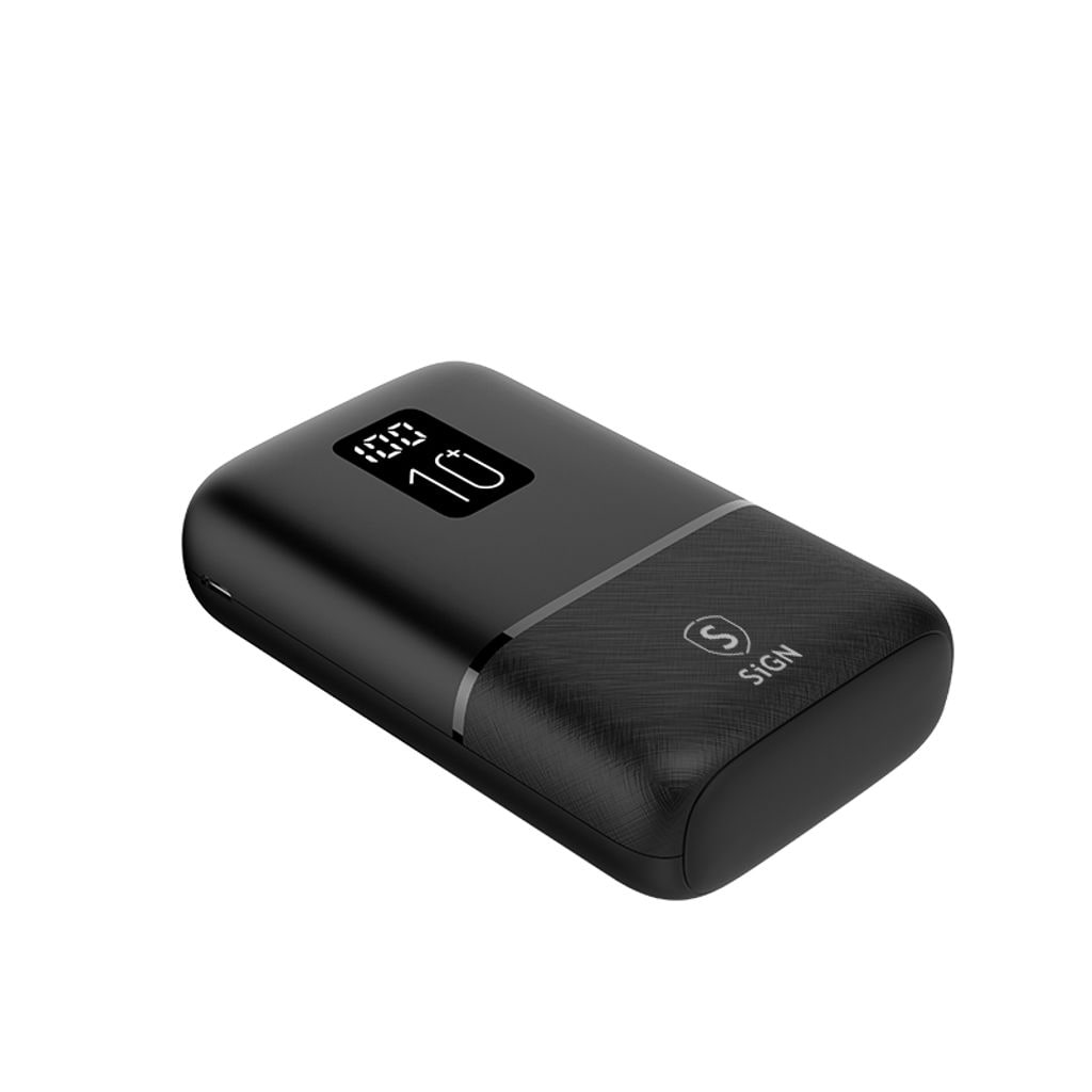 SiGN Mini Q.C Powerbank med 10000mAh kapacitet är en kompakt och praktisk laddningslösning för smartphones, surfplattor och andra USB-kompatibla enheter. Den höga batterikapaciteten gör det möjligt att ladda dina enheter flera gånger, samtidigt som den lilla storleken gör powerbanken enkel att ta med i fickan, väskan eller under resor. Den är kompatibel med enheter från tillverkare som Apple, Samsung, Huawei och andra USB-laddade enheter.