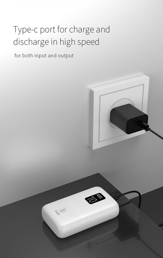 SiGN Mini Q.C Powerbank med 10000mAh kapacitet är en kompakt och praktisk laddningslösning för smartphones, surfplattor och andra USB-kompatibla enheter. Den höga batterikapaciteten gör det möjligt att ladda dina enheter flera gånger, samtidigt som den lilla storleken gör powerbanken enkel att ta med i fickan, väskan eller under resor. Den är kompatibel med enheter från tillverkare som Apple, Samsung, Huawei och andra USB-laddade enheter.