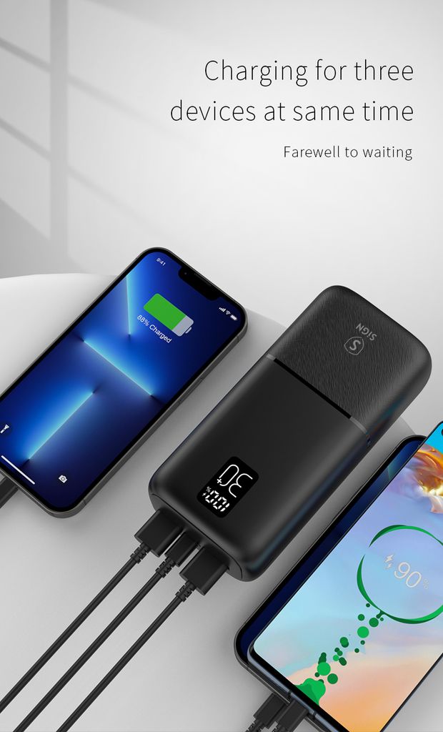 61736Powerbank 30000 mAh Trippel Utgång 2x USB-A + 1x USB-C Svarthttps://www.phonelife.se/laddare-sladdar/powerbanks/powerbank-30000-mah-trippel-utgang-2x-usb-a-1x-usb-c-svart?channelCountry=SEhttps://www.phonelife.se/pub_images/original/SNPB-30MAHB_62sjifYikXLSchK9GpA20.jpgInStock329SEK/laddare-sladdar/powerbanksSiGN<p>Med denna kraftfulla powerbank från SiGN kan du ladda upp till tre enheter samtidigt - en praktisk och pålitlig följeslagare för resor, arbete och vardagsbruk. Med en hög kapacitet på 30 000 mAh har du gott om batteri för att ladda din telefon flera gånger och hålla dina enheter igång hela dagen.</p>