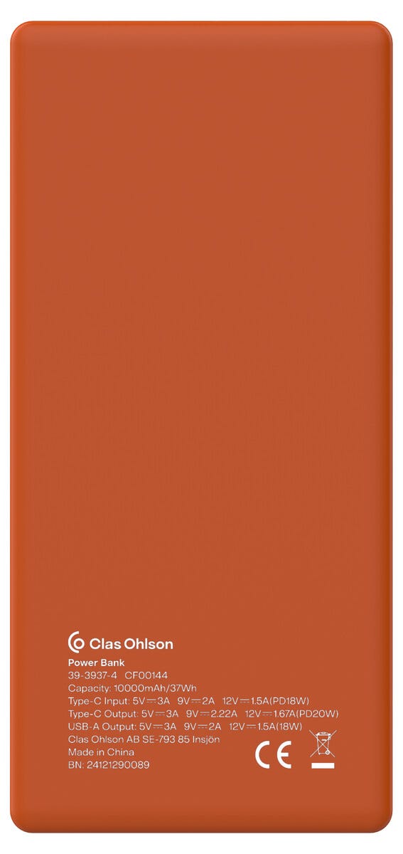 62121Powerbank USB-A + USB-C med Display 10000 mAh PD 20W Orangehttps://www.phonelife.se/laddare-sladdar/powerbanks/powerbank-usb-a-usb-c-med-display-10000-mah-pd-20w-orange?channelCountry=SEhttps://www.phonelife.se/pub_images/original/68734966333470.jpgInStock299SEK/laddare-sladdar/powerbanks<p>Powerbank USB-A + USB-C med display är en kraftfull och kompakt lösning för snabb och flexibel laddning av mobiltelefon, surfplatta, hörlurar och andra enheter när du är på språng. Med en kapacitet på 10000 mAh och stöd för snabbladdning via USB-C Power Delivery kan du ladda din enhet upp till cirka 50 % på omkring 30 minuter. Den tydliga LED-displayen visar aktuell batterinivå och laddstatus så att du enkelt har kontroll över energinivån.</p>