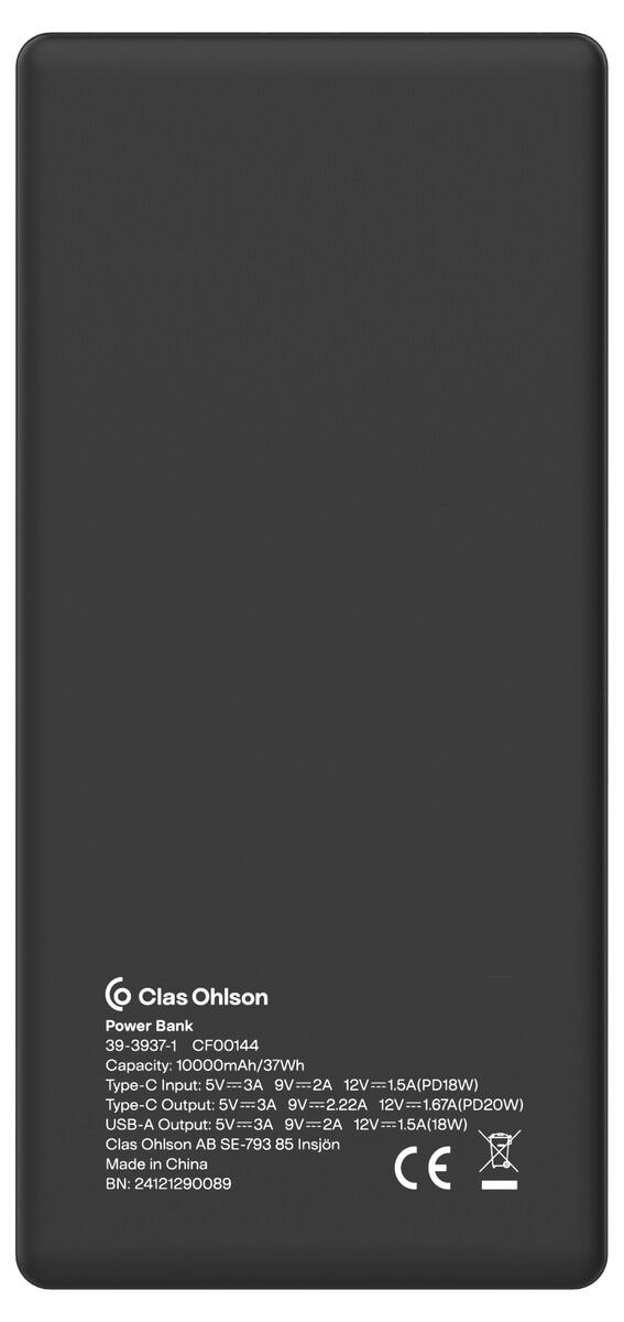 62119Powerbank USB-A + USB-C med Display 10000 mAh PD 20W Svarthttps://www.phonelife.se/laddare-sladdar/powerbanks/powerbank-usb-a-usb-c-med-display-10000-mah-pd-20w-svart?channelCountry=SEhttps://www.phonelife.se/pub_images/original/68734965841950.jpgInStock299SEK/laddare-sladdar/powerbanks<p>Powerbank USB-A + USB-C med display är en kraftfull och kompakt lösning för snabb och flexibel laddning av mobiltelefon, surfplatta, hörlurar och andra enheter när du är på språng. Med en kapacitet på 10000 mAh och stöd för snabbladdning via USB-C Power Delivery kan du ladda din enhet upp till cirka 50 % på omkring 30 minuter. Den tydliga LED-displayen visar aktuell batterinivå och laddstatus så att du enkelt har kontroll över energinivån.</p>