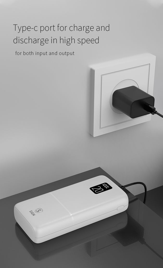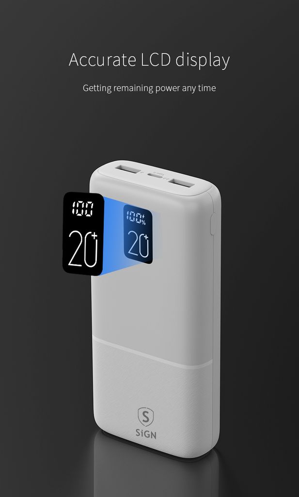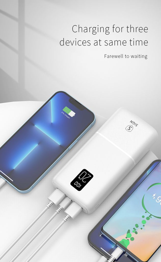 SiGNs extremt kraftfulla QC Powerbank 20 000 mAh ger långvarig och pålitlig extra batteritid för mobiltelefoner, surfplattor och andra USB-enheter. Den höga kapaciteten gör att du kan ladda dina enheter flera gånger, perfekt för resor och vardagsbruk.