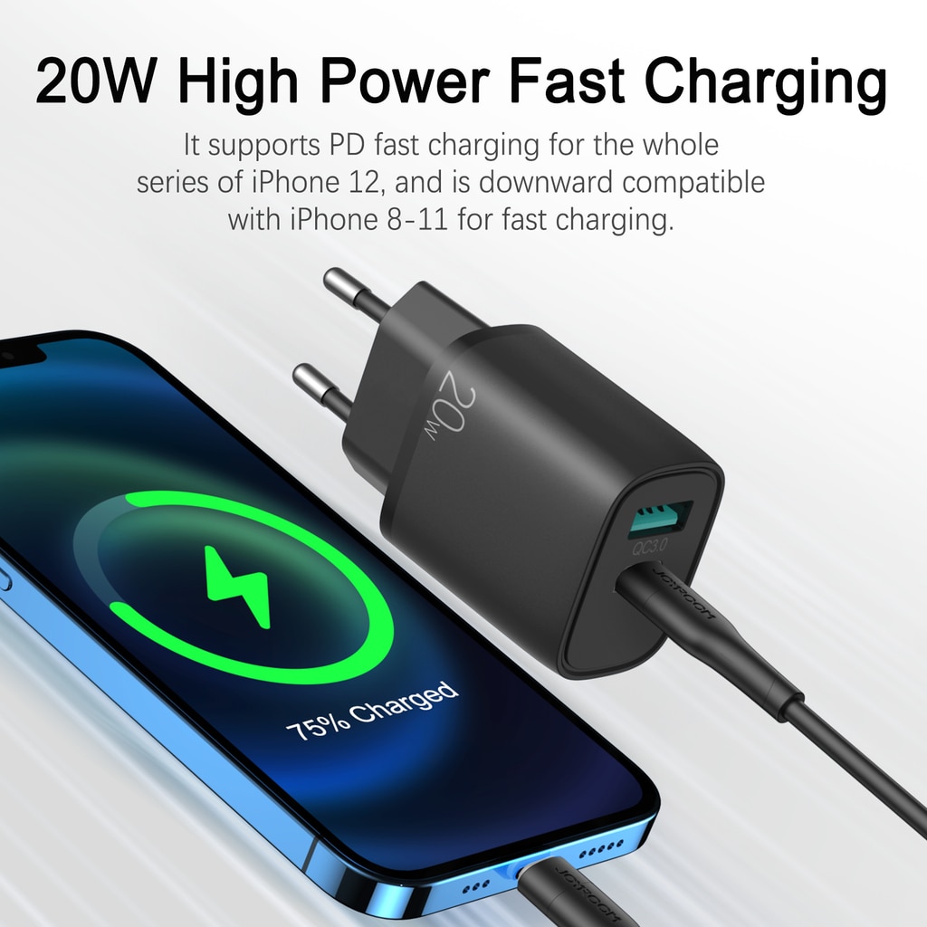Snabbladdare USB-C & USB-A, PD & QC 3.0 20W Svart