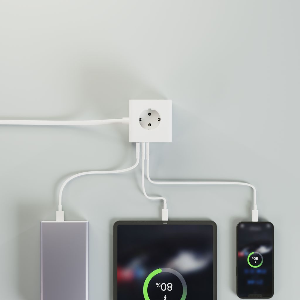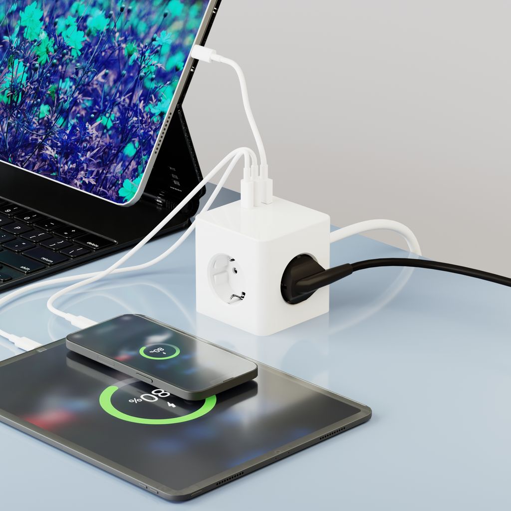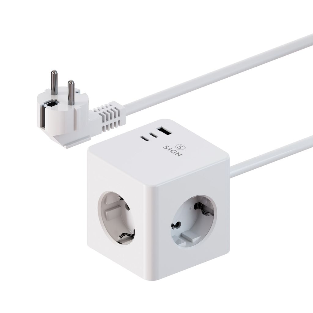 Kompakt och kraftfullt kubformat grenuttag med 3 portar från SiGN som ger dig en smart och effektiv laddningslösning för hemmet eller kontoret. Den praktiska kubdesignen sparar plats och gör det enkelt att ansluta flera enheter samtidigt utan kabeltrassel. Med tre traditionella eluttag samt USB-A och två USB-C-portar kan du ladda allt från smartphones och surfplattor till andra elektroniska prylar. USB-C-portarna stöder snabbladdning via Power Delivery upp till 20 W vilket ger snabb och stabil laddning när du behöver det som mest. Den robusta kapaciteten på upp till 16 A och total effekt på... Läs mer