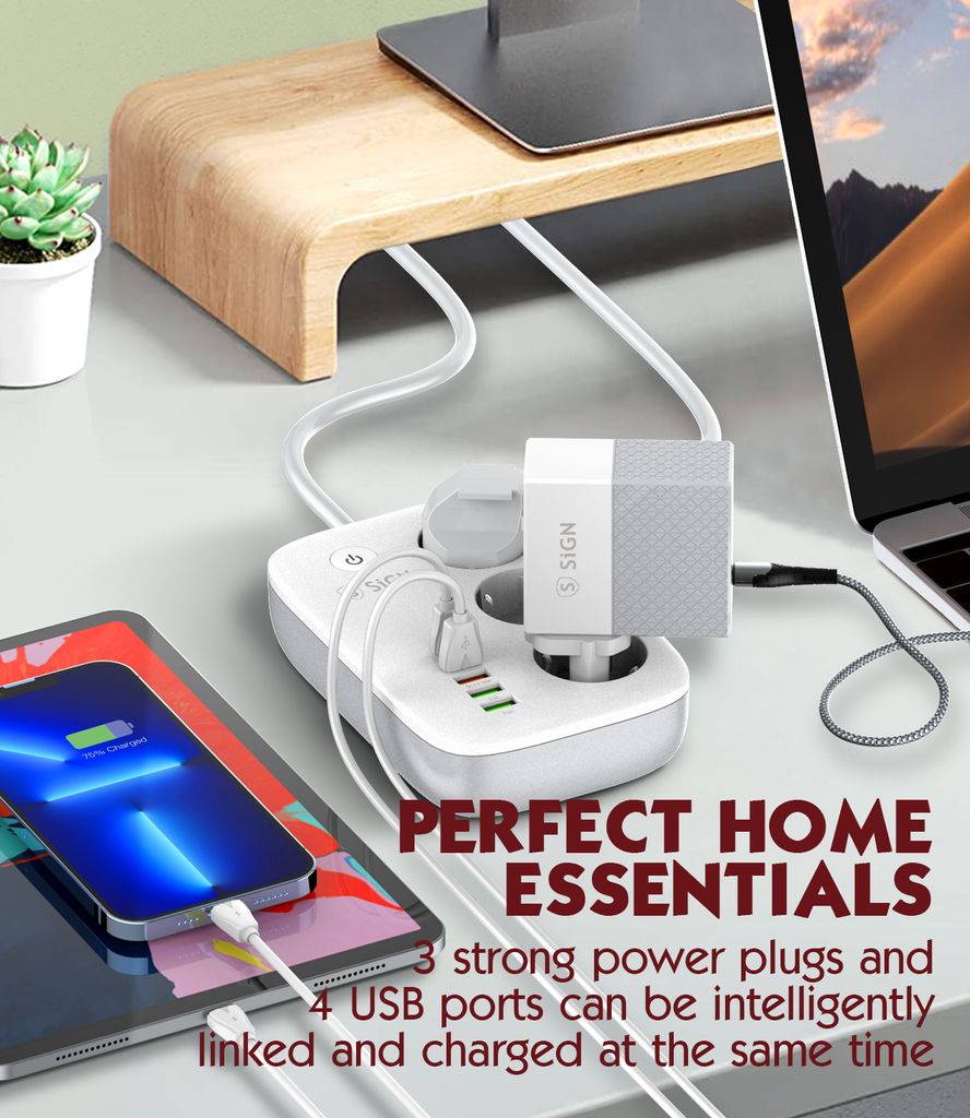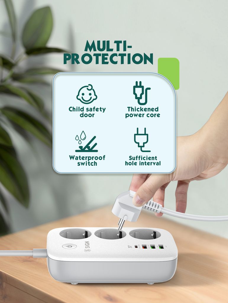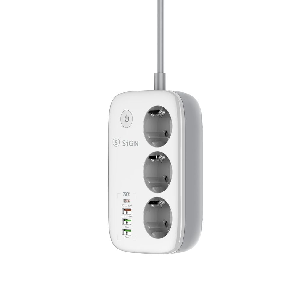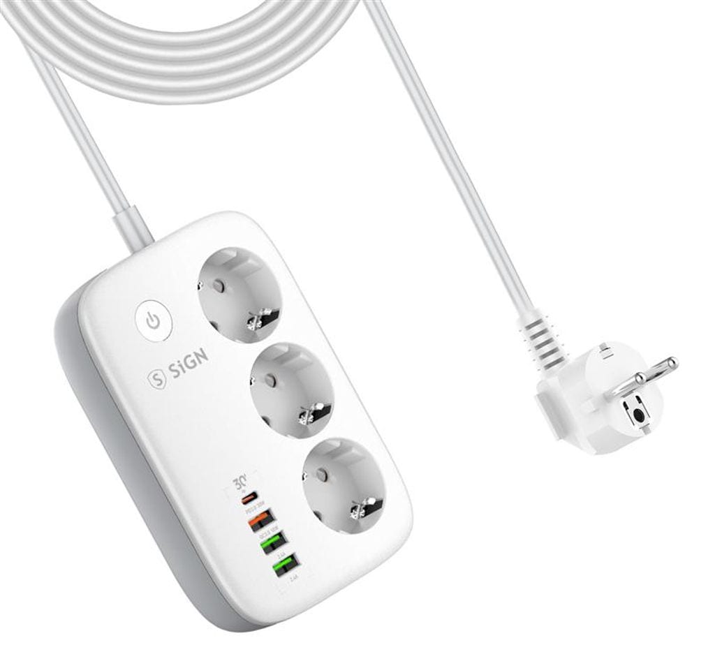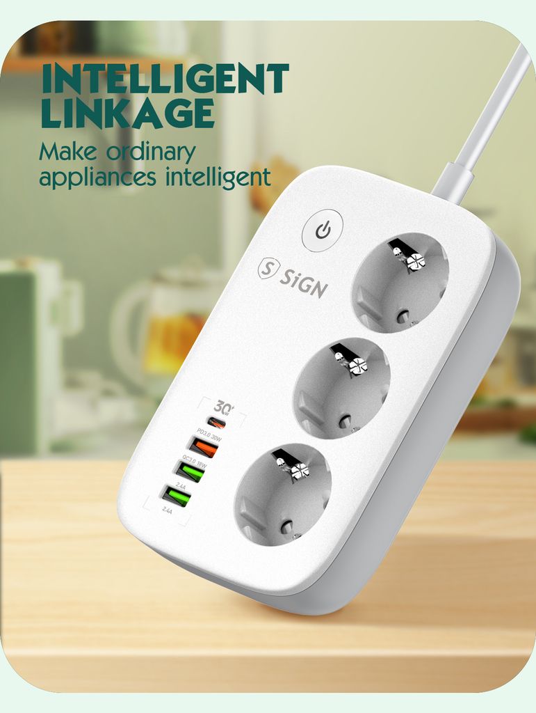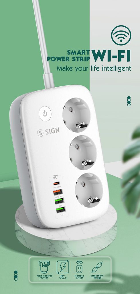 Smart WiFi-grenuttag från SiGN som ger dig full kontroll över din elektronik och förenklar vardagen med modern teknik. Med tre självständiga uttag och fyra USB-portar kan du ladda flera enheter samtidigt och styra varje anslutning individuellt via SiGN Smart Home-appen. Grenuttaget är utrustat med överladdningsskydd och tydliga LED-indikatorer som visar om strömmen är på eller av. Tack vare stöd för röststyrning via Amazon Alexa och Google Assistant kan du enkelt styra belysning, hushållsapparater och annan elektronik med din röst. Funktionen för schemaläggning gör det möjligt att automatis... Läs mer