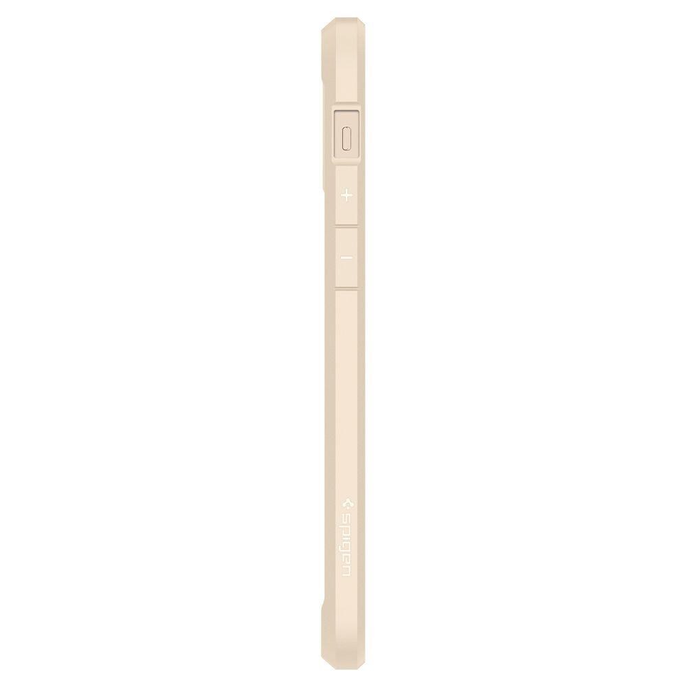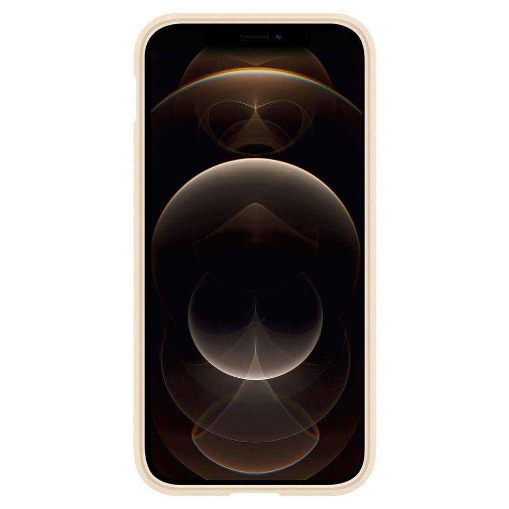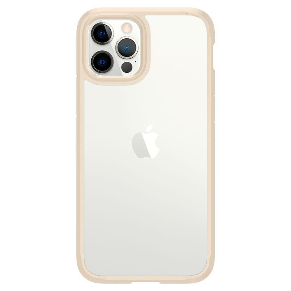 Genomskinligt Ultra Hybrid-skal med beige ram till iPhone 12 Pro och iPhone 12 från Spigen. Skalet skyddar effektivt telefonen mot skador samtidigt som den ursprungliga designen bevaras.