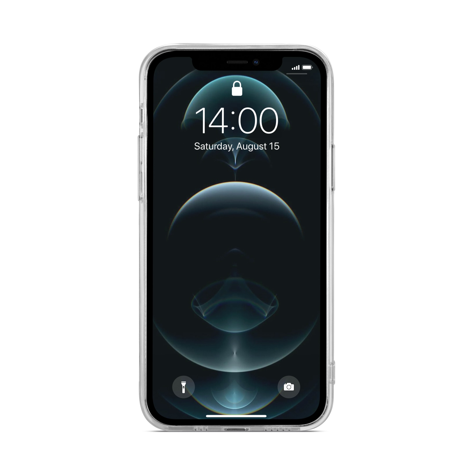 Stötdämpande TPU-skal till Apple iPhone 12, iPhone 12 Pro från Mobique. Håller telefonen hel vid stötar och fall i vardagen. Skalet är tillverkat i mjuk och flexibel TPU som är format perfekt för din telefon och ger ett säkert skydd utan att göra telefonen klumpig. Skalet är genomskinligt för att visa upp telefonens ursprungliga design och färg.