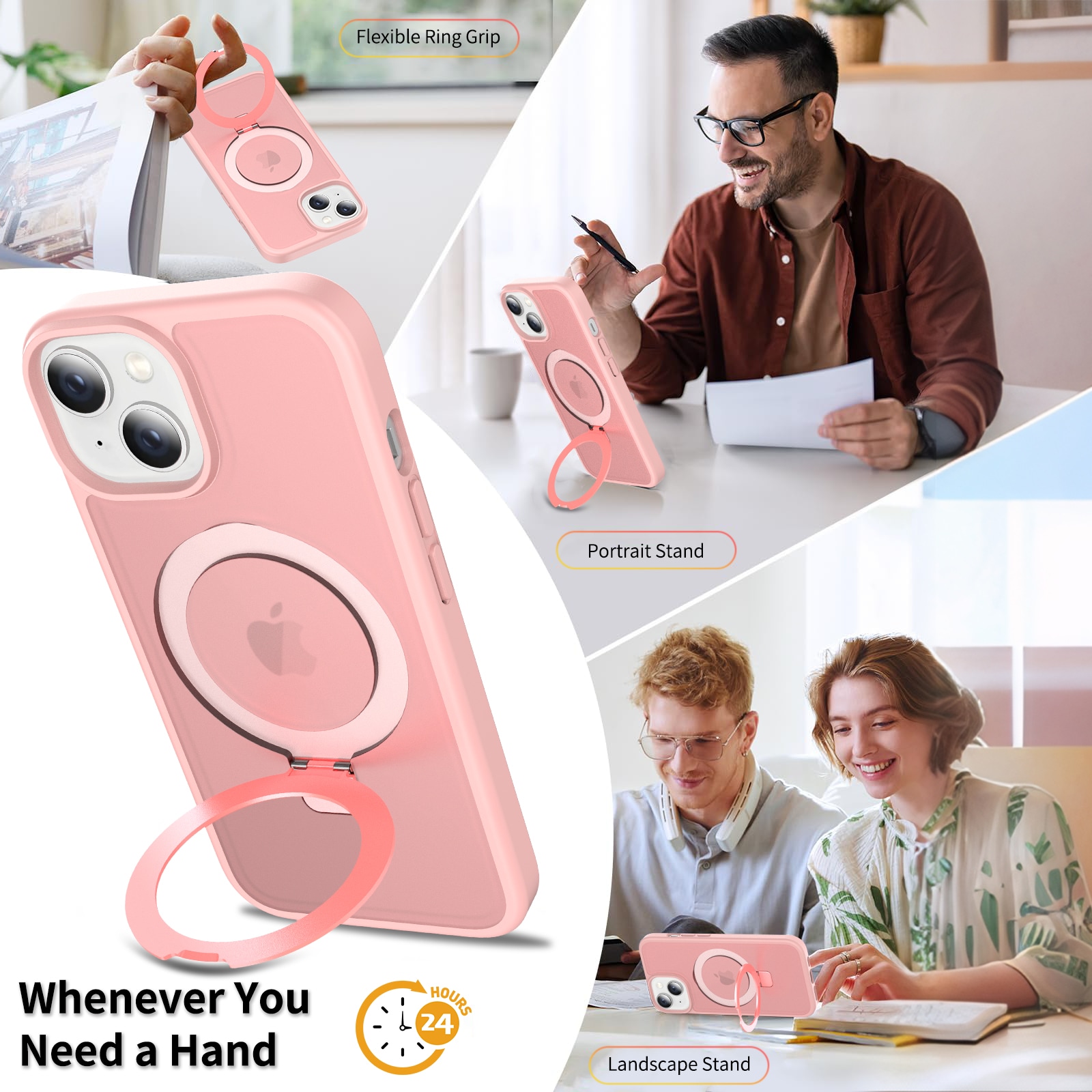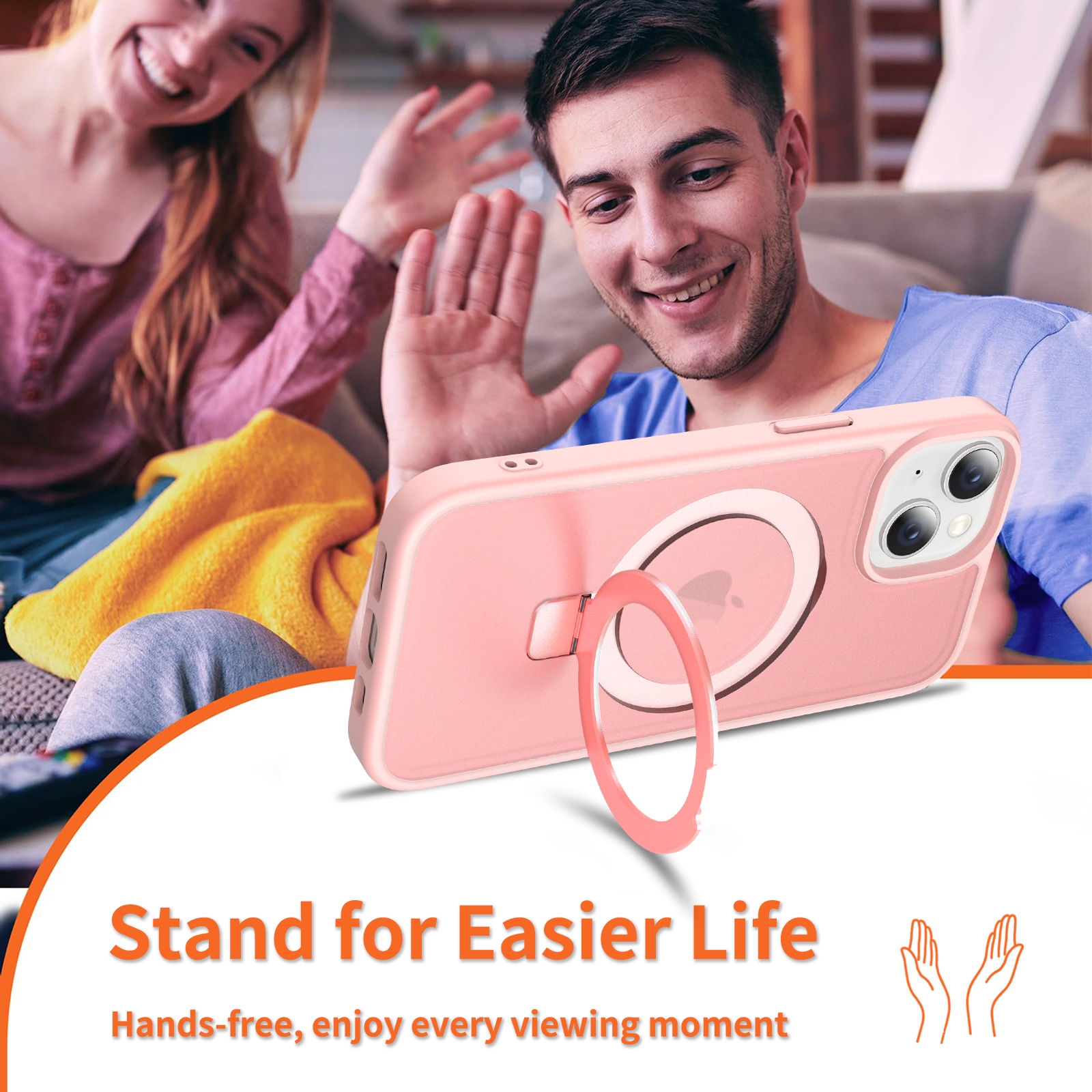 - Utfällbar MagSafe-ring som kan användas som mobilställ