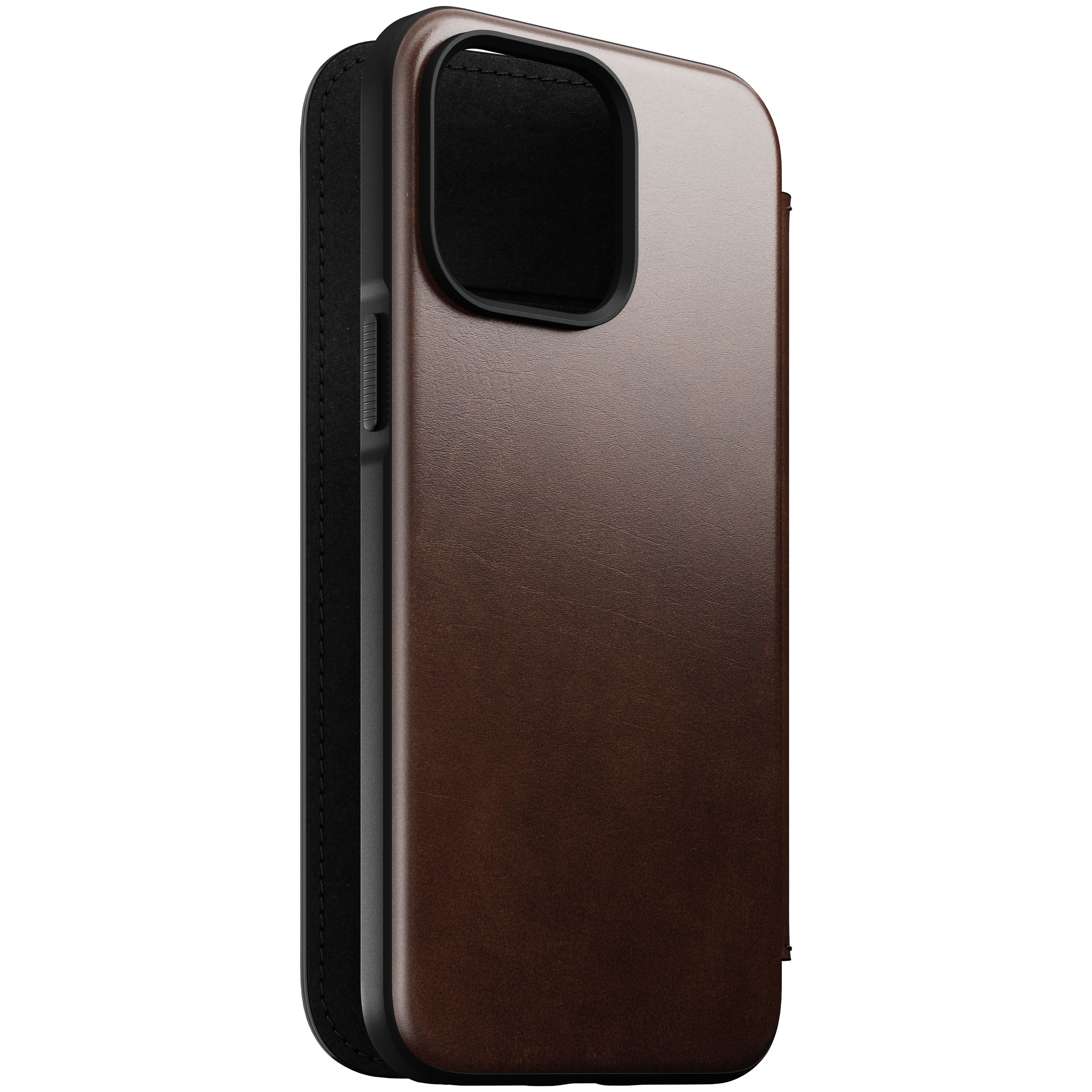 Nomad Modern Leather Folio är ett snyggt läderfodral med MagSafe-stöd som skyddar din Apple iPhone 14 Pro Max på ett smakfullt sätt. Fodralet är tillverkat av stöttålig polykarbonat som omsluts av exklusivt äkta, vegetabiliskt garvat läder som ger en mjuk och len finish. Lädret blir dessutom bara finare med tiden.