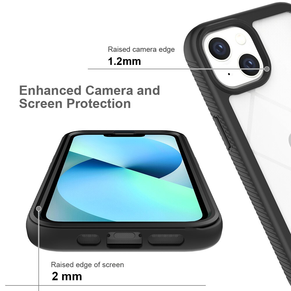 Heltäckande skal till Apple iPhone 14. Skalet har en tvådelad konstruktion för att ge ett så stötdämpande skydd som möjligt. Baksidan av skalet består av TPU och har en avtagbar ram i hårdplast med upphöjda kanter så att även skärmen skyddas. På så vis får du ett mycket bra stötskydd utan att göra telefonen onödigt tjock.