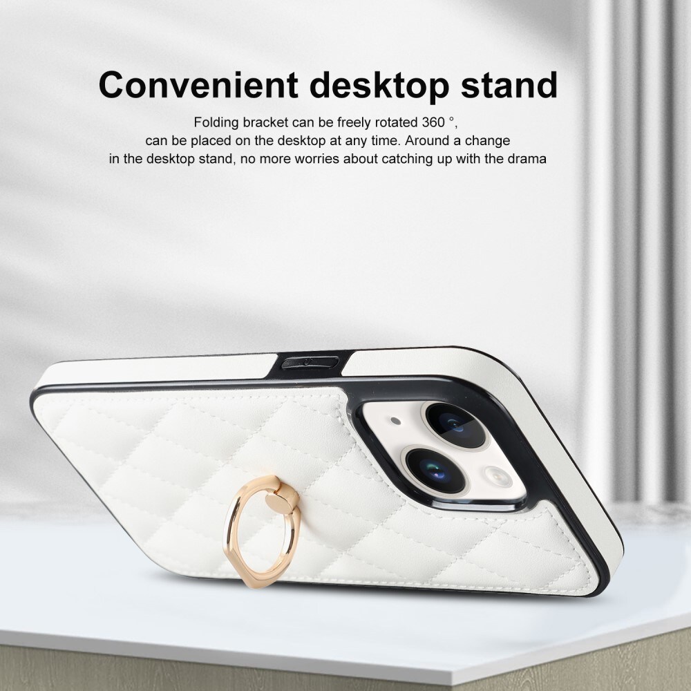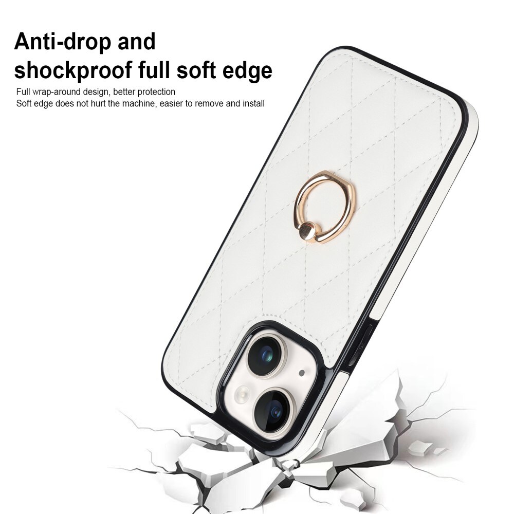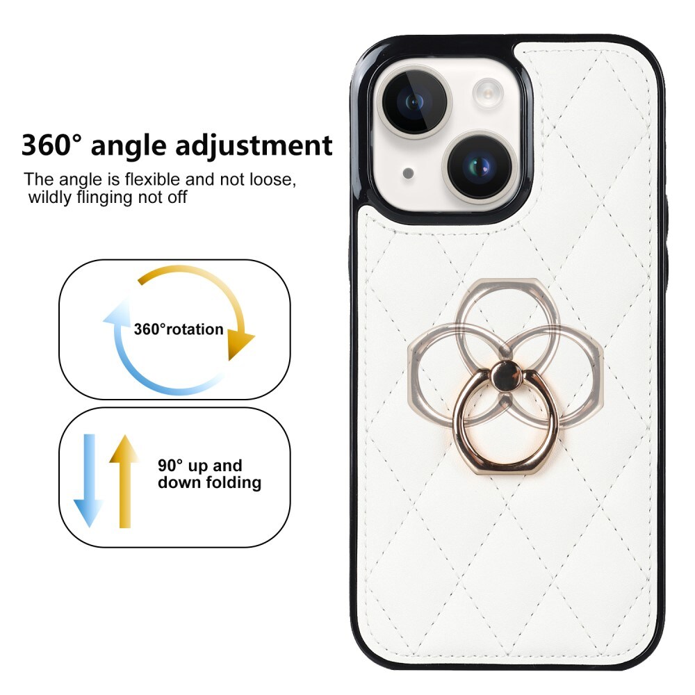 Snyggt, stötdämpande skal till iPhone 14 med greppring och quiltad baksida i konstläder. Skalet ger ett utmärkt skydd runt om telefonen och håller den hel mot allt vardagligt slitage som den utsätts för. På baksidan av skalet sitter en greppring så att du får ett bekvämare och bättre grepp om telefonen, detta minskar risken för att den tappas. Ringen är även roterbar i 360 grader och fungerar utmärkt som stativ, perfekt om du vill kolla på film eller videoklipp.