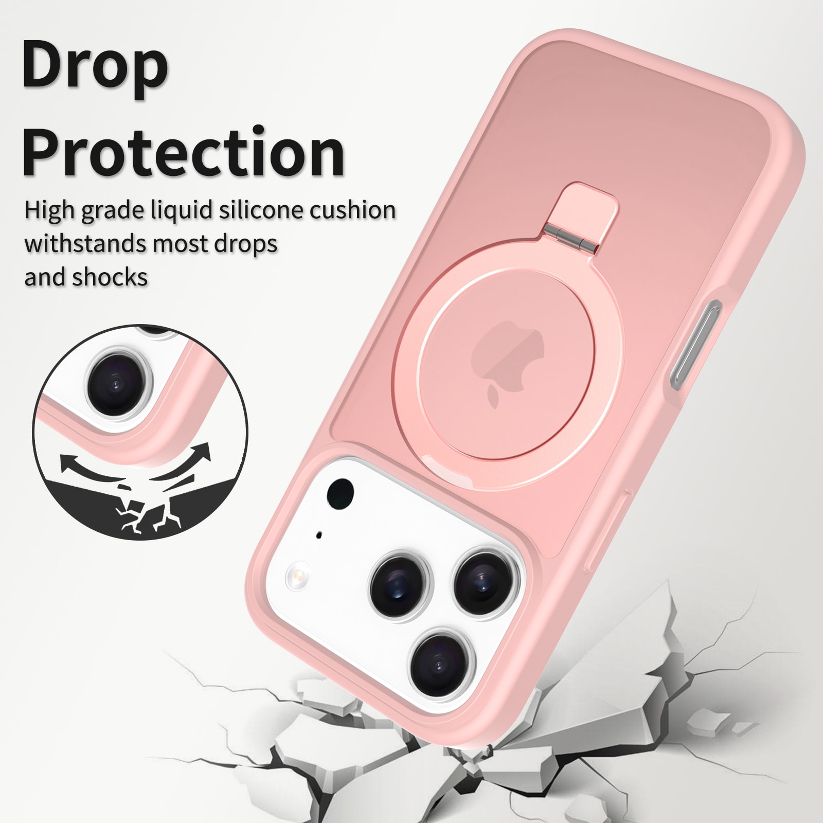 Mobilskal med utfällbar magnetisk ring till Apple iPhone 17 Pro. För bästa skydd mot stötar och fall är skalet tvådelat med en TPU-kärna och ett hölje i hårdplast. Ringen på baksidan är magnetisk och kan användas tllsammans med MagSafe-kompatibla tillbehör såsom laddare och korthållare. Ringen kan även bilda ett ställ för att se på film, klipp eller för att spela.