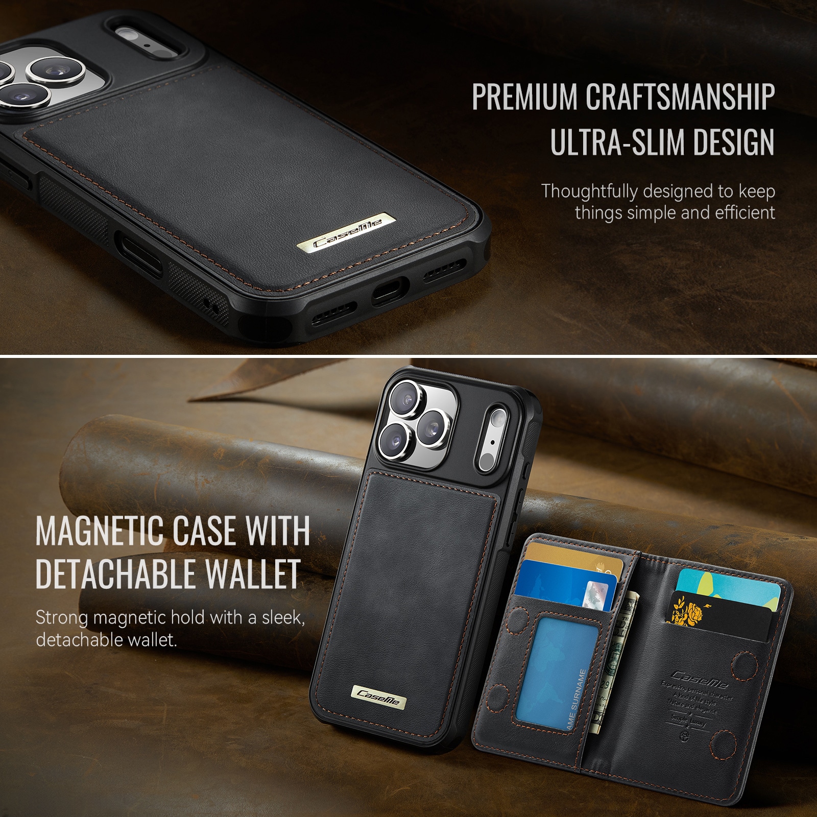 Tunt och smidigt magnetiskt plånboksskal från CaseMe till Apple iPhone 17 Pro. Skalet har en avtagbar magnetisk plånbok som ger flexibel användning i vardagen, samtidigt som telefonen skyddas i ett slimmat och stilrent skal.