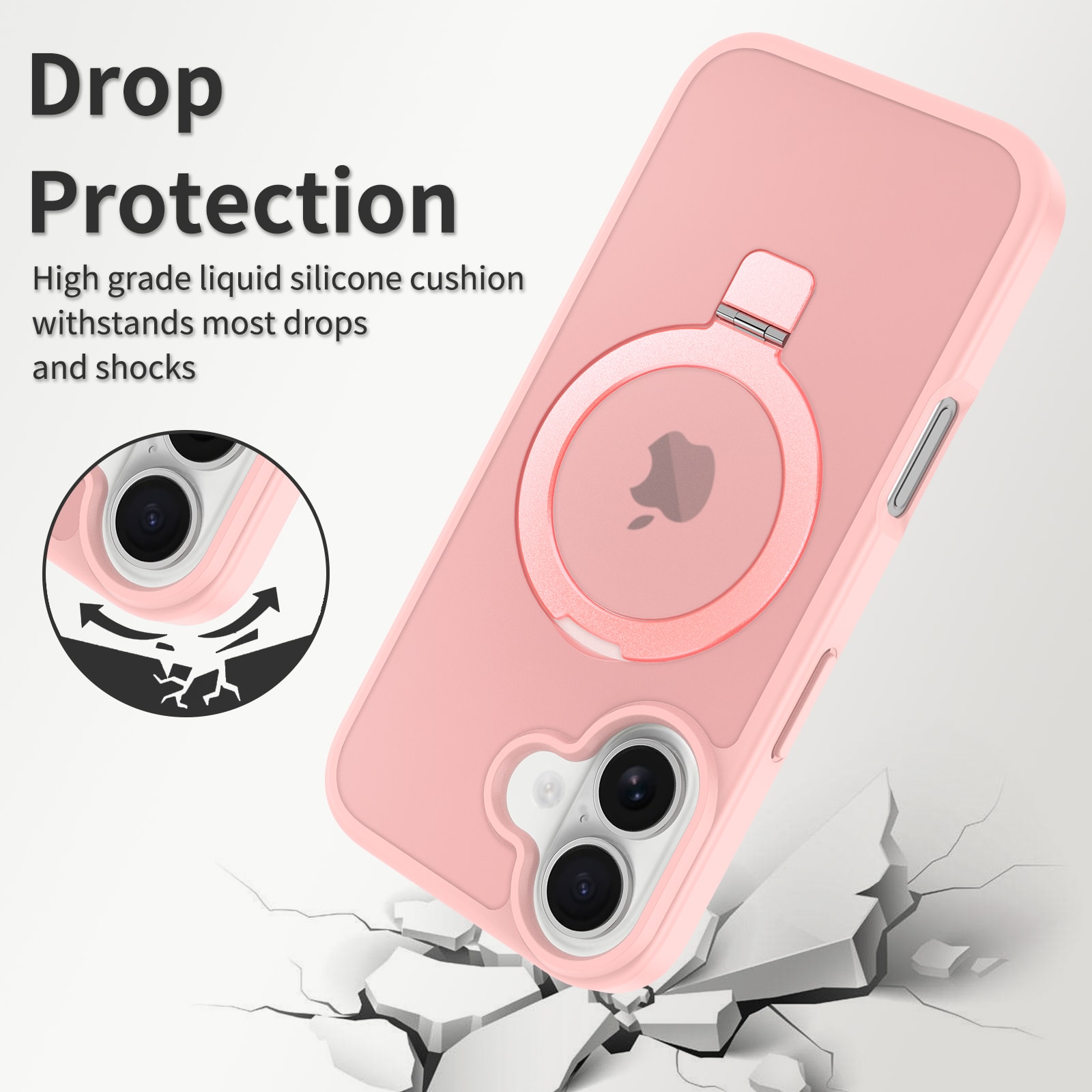 Mobilskal med utfällbar magnetisk ring till Apple iPhone 17. För bästa skydd mot stötar och fall är skalet tvådelat med en TPU-kärna och ett hölje i hårdplast. Ringen på baksidan är magnetisk och kan användas tllsammans med MagSafe-kompatibla tillbehör såsom laddare och korthållare. Ringen kan även bilda ett ställ för att se på film, klipp eller för att spela.