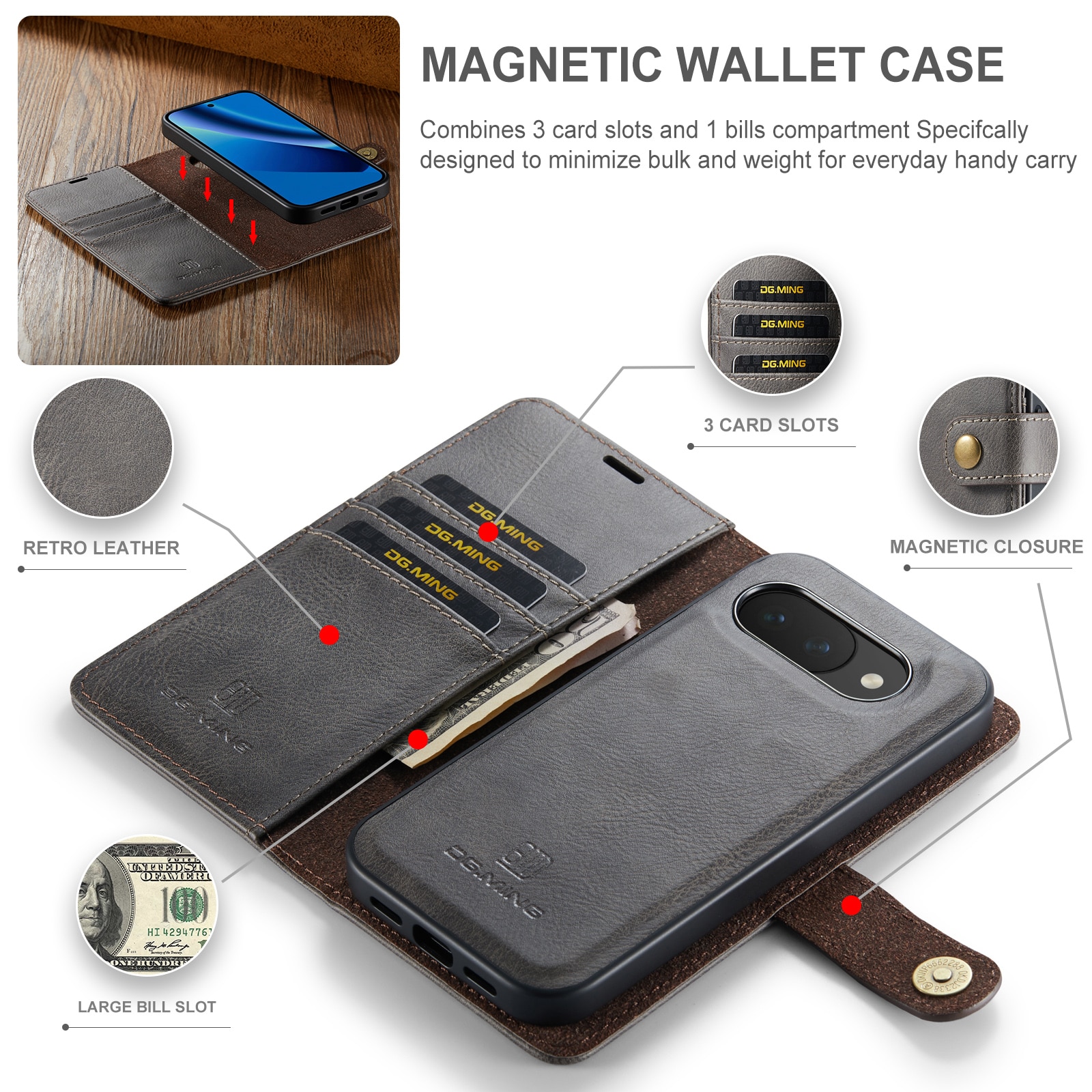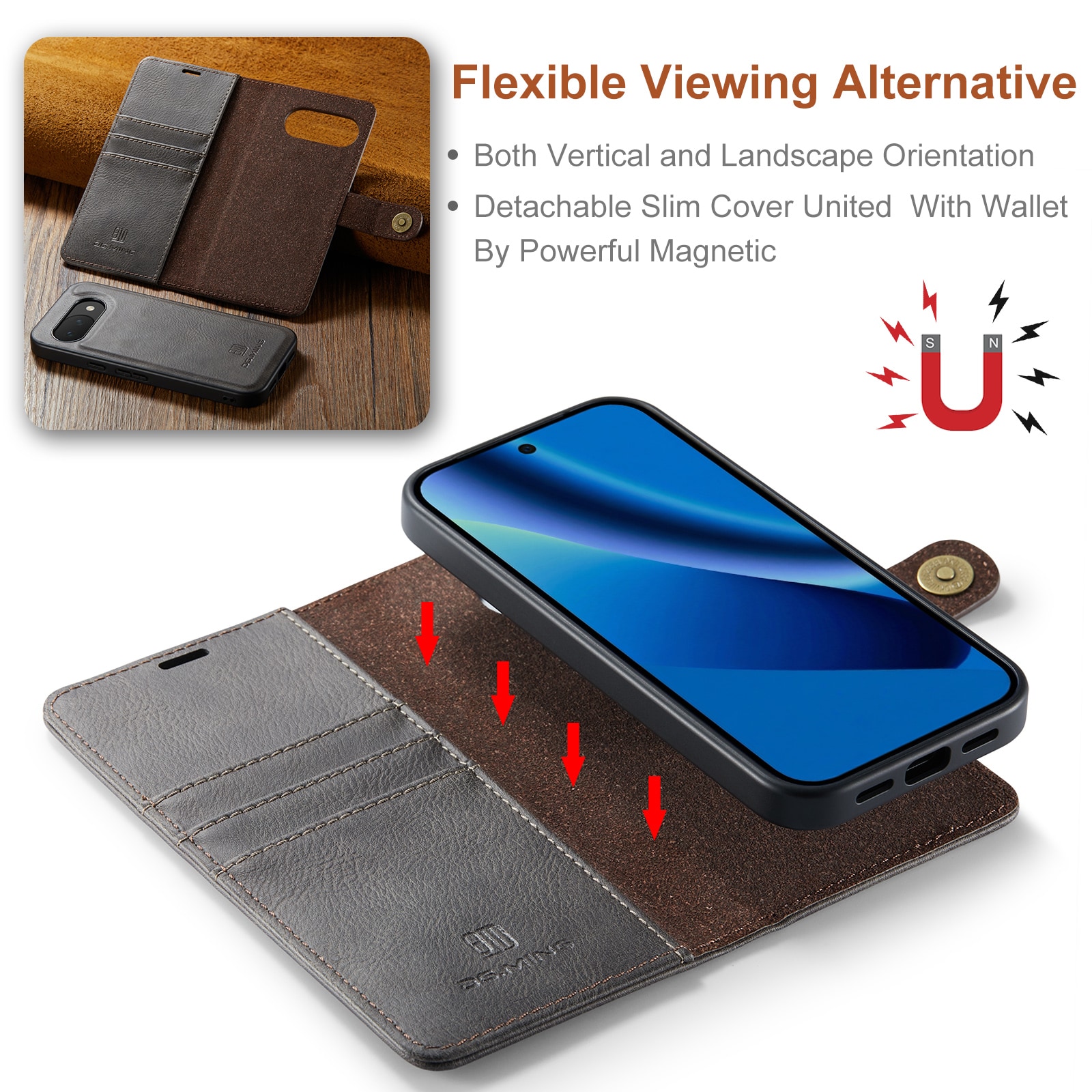 Fodral med avtagbart magnetskal till Google Pixel 10a från DG.MING. Fodralet har en klassisk och stilren design. Det avtagbara skalet gör att du slipper använda hela fodralet t.ex. när du är hemma eller på jobbet.
