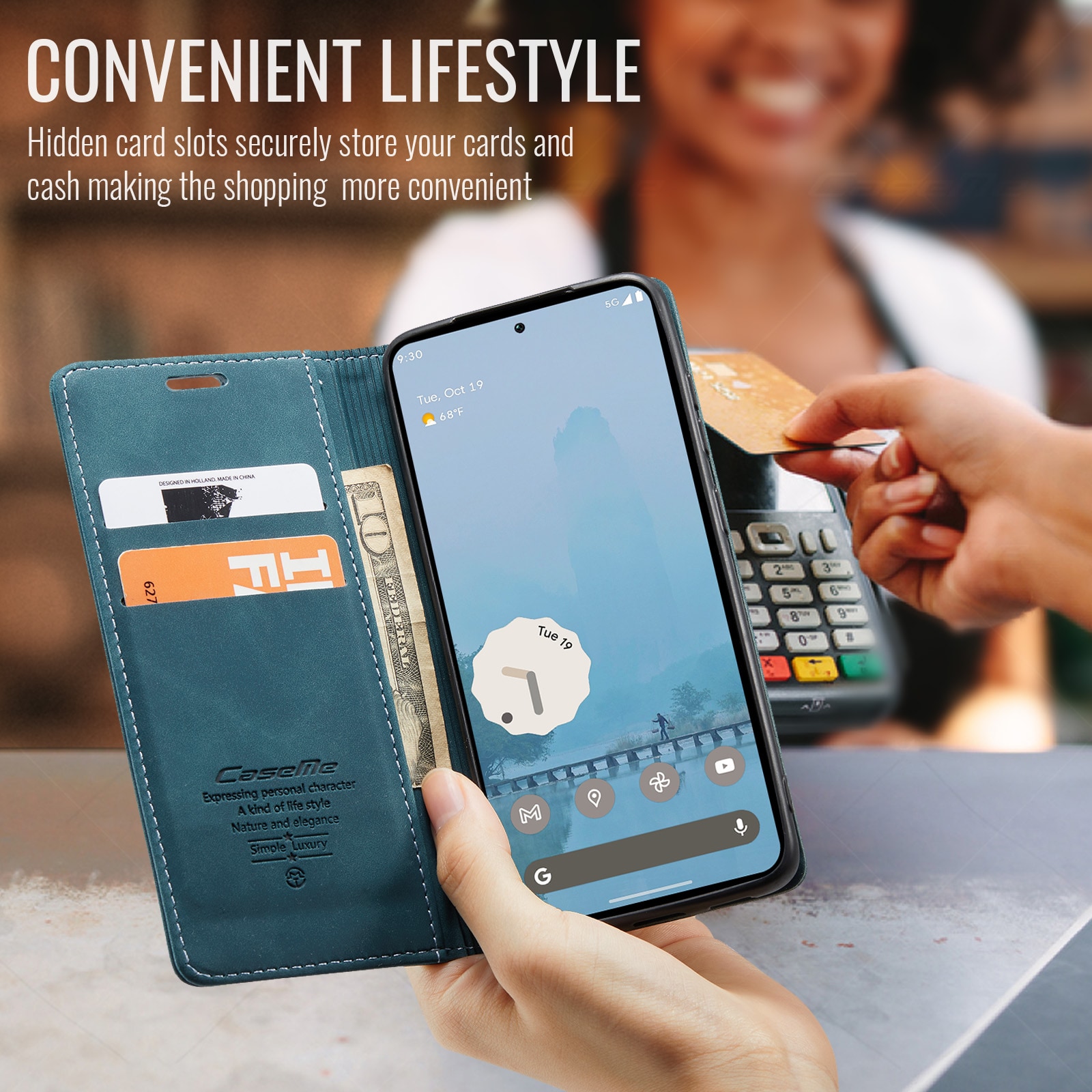 Tunt och smidigt plånboksfodral från CaseMe till Google Pixel 10a. Fodralet skyddar effektivt runt om hela telefonen utan att den tappar stilen. Locket hålls stängt med osynliga magneter, vilket ger fodralet en tunn design som inte gör telefonen klumpig.