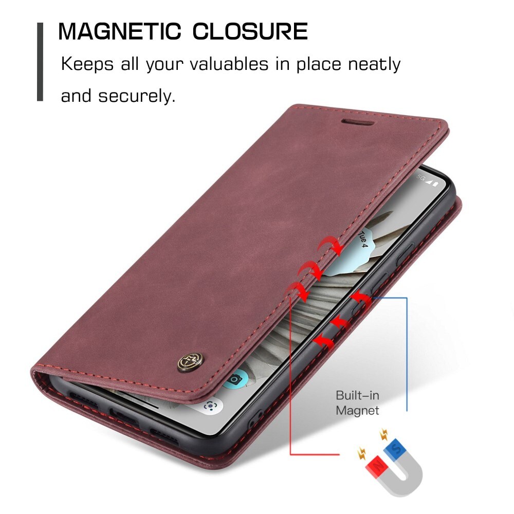 Tunt och smidigt plånboksfodral från CaseMe till Google Pixel 7 Pro. Fodralet skyddar effektivt runt om hela telefonen utan att den tappar stilen. Locket hålls stängt med osynliga magneter, vilket ger fodralet en tunn design som inte gör telefonen klumpig.