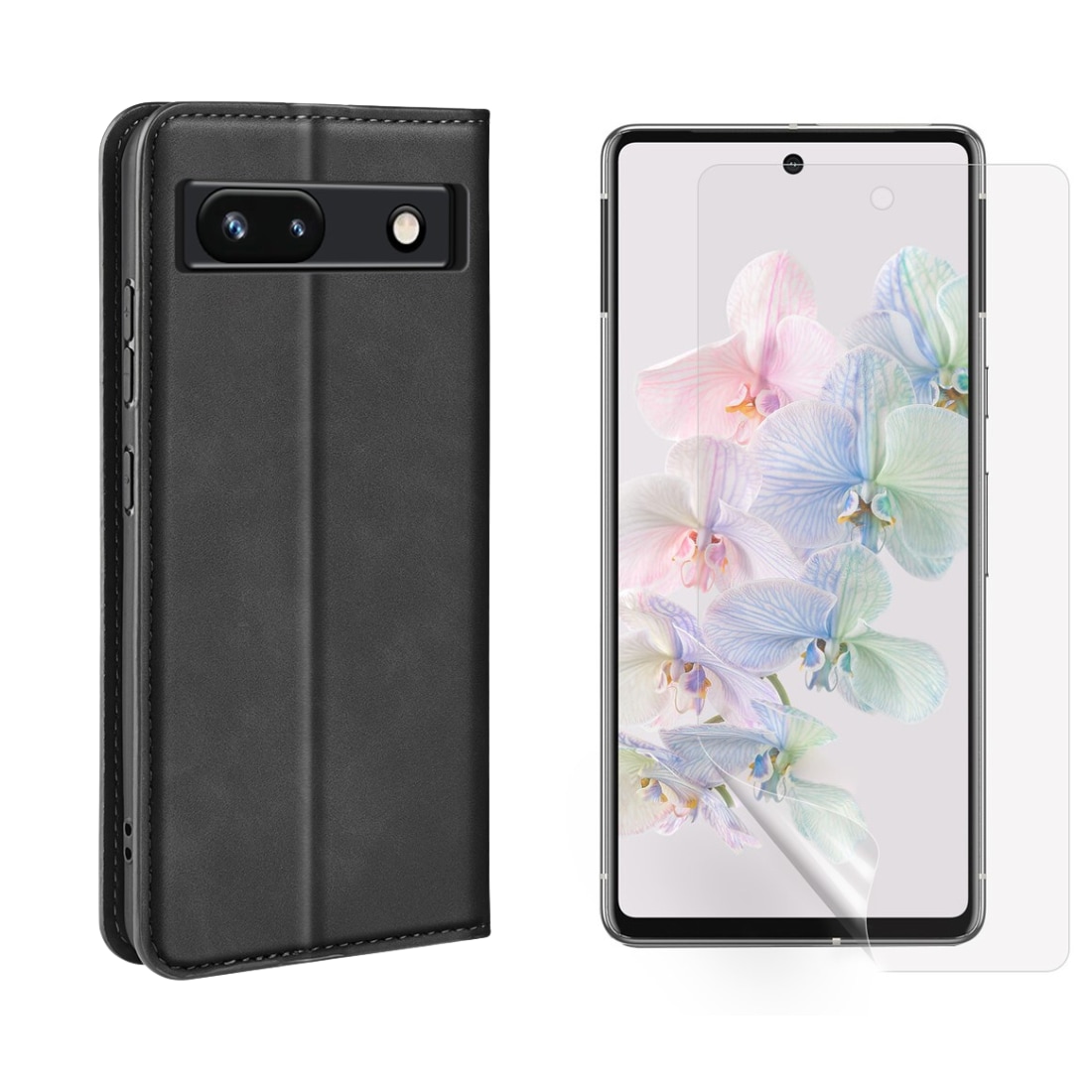 Kit till Google Pixel 7a med slimmat plånboksfodral och skärmskydd i mjukplast. Det tunna fodralet i konstläder skyddar runt hela din telefon och har en rymlig plånbok på insidan där du får plats med upp till två kort. Telefonen sitter säkert fast i det stötdämpande TPU-skalet och döljs bakom locket som hålls stängt med diskreta magneter som placerats i fodralet.. På så sätt skyddas både framsida och baksidan av telefonen mot skador. Skärmskyddet skyddar effektivt din skärm mot repor och skador utan att göra telefonen klumpig. Skyddsfilmen är tunn och påverkar inte touchförmågan eller känsl... Läs mer
