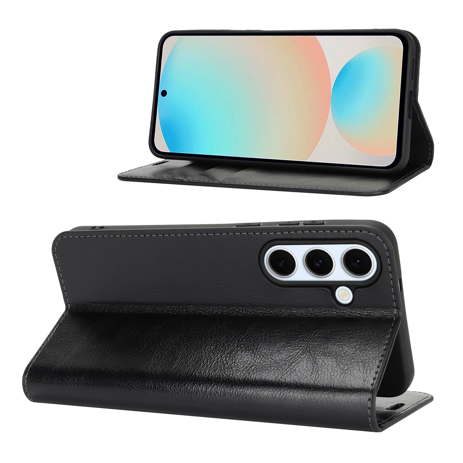Skydda din Samsung Galaxy S25 FE med ett fodral i äkta läder. Trots sin tunna och smarta design har fodralet 3 stycken kortfack och 1 sedelfack på insidan av locket. Telefonen klickas i ett flexibelt skal för att sitta säkert fast i fodralet.