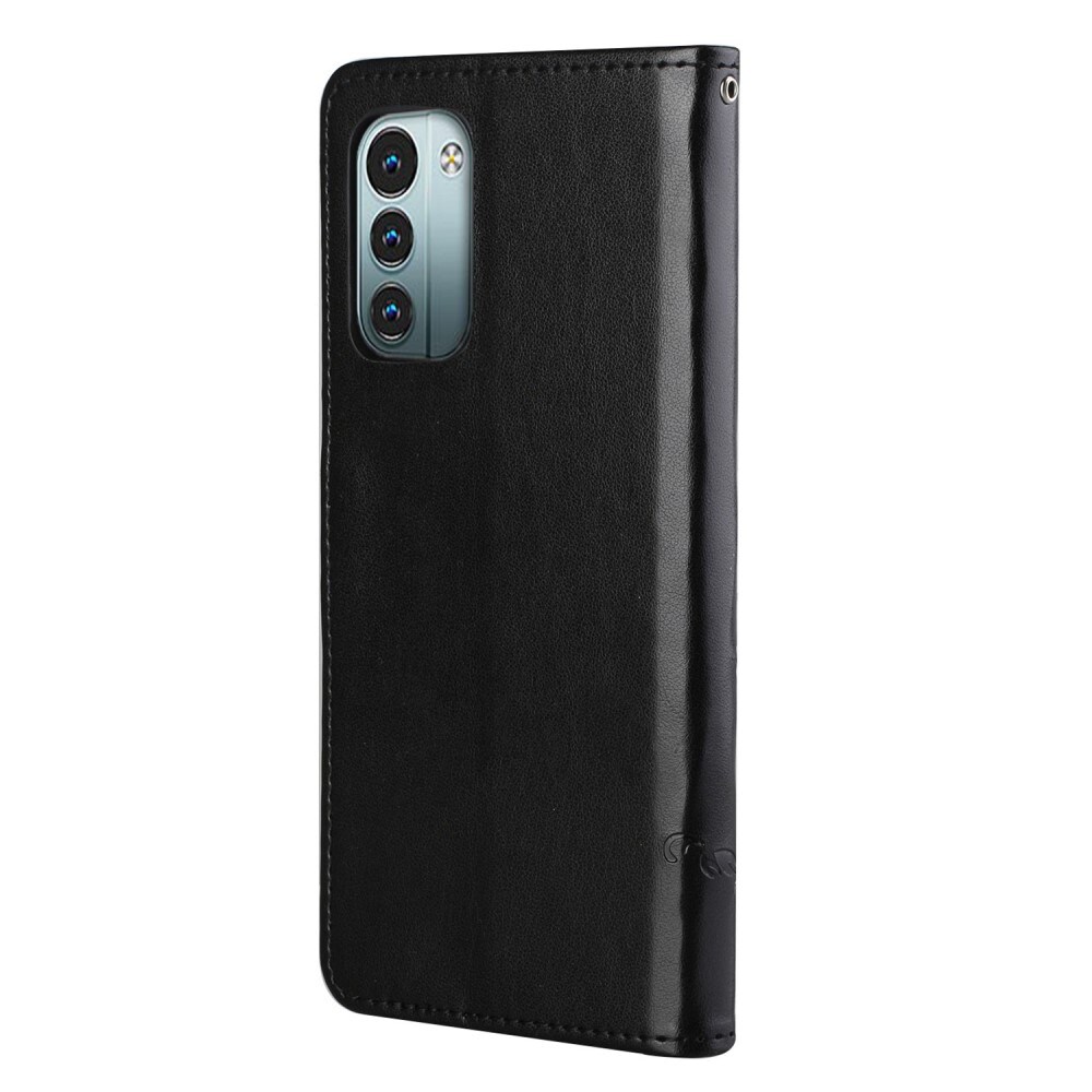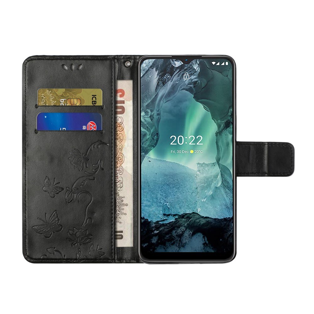 Mobilfodral med fjärilar och mönster stansat i lädret till Nokia G11, Nokia G21. Plånboksfodralet har ett snyggt utseende och skyddar runt om hela telefonen så att du undviker skador, repor och smuts.