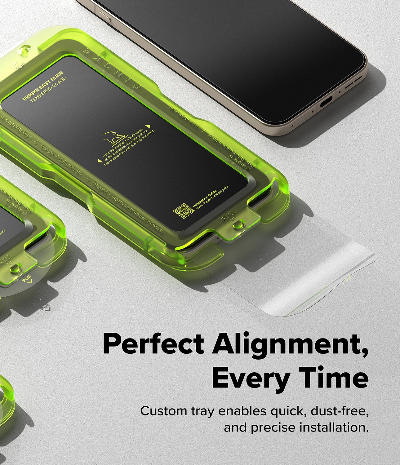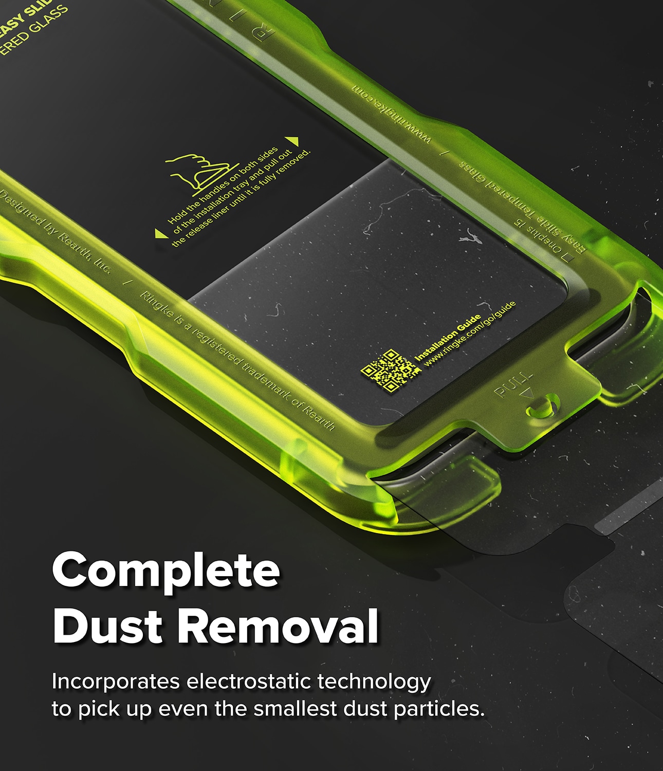 Installationen är otroligt enkel, tack vare det medföljande praktiska installationsverktyget. Det gör det möjligt att fästa skärmskyddet helt rakt på skärmen utan besvär.
