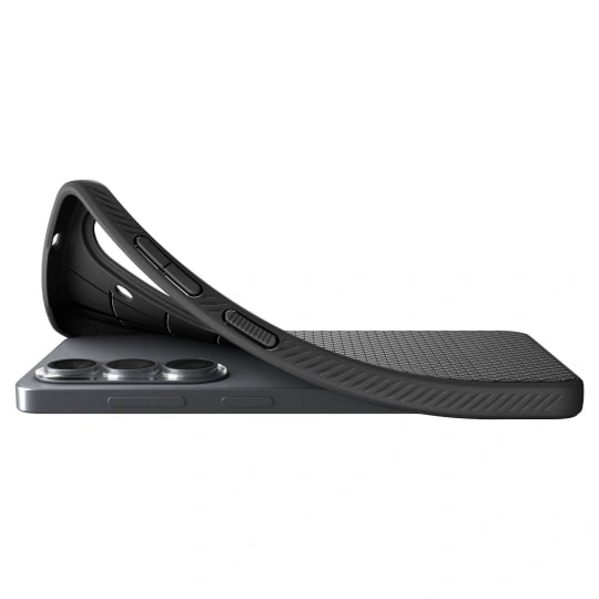 Liquid Air-skal till Samsung Galaxy S26 från Spigen. Skalet har en helt unik design med graverade trianglar på baksidan. Skalet är tunt och är format för att följa telefonens form men med ett ännu bättre grepp. Ytbehandling håller skalet fritt från fingeravtryck, smuts och repor.