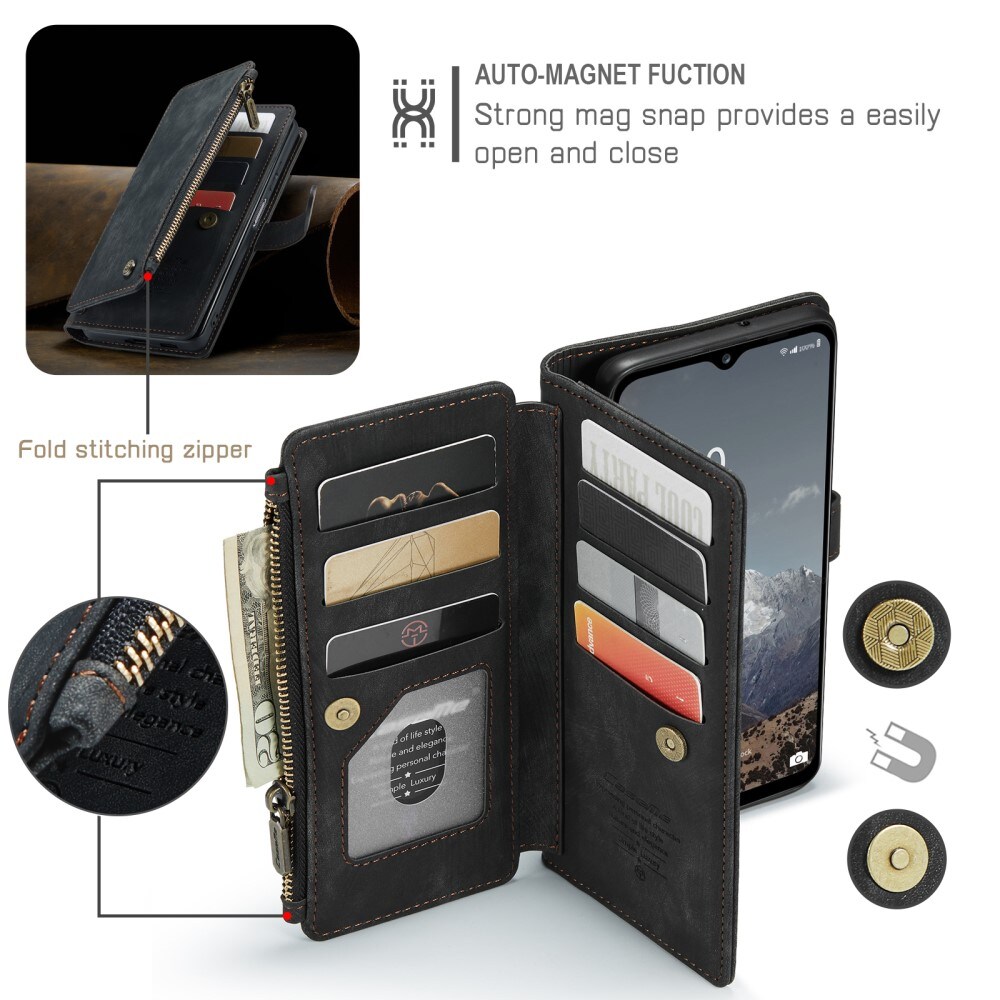 Mobilfodral med extra rymlig plånbok med många kortplatser till Samsung Galaxy A04s från CaseMe. Plånboken har 7 stycken kortfack, en sedelficka samt en rymligt myntfack med dragkedja.