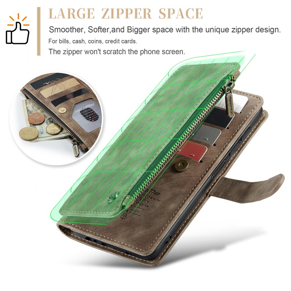 Mobilfodral med extra rymlig plånbok med många kortplatser till Samsung Galaxy A14 från CaseMe. Plånboken har 7 stycken kortfack, en sedelficka samt en rymligt myntfack med dragkedja.