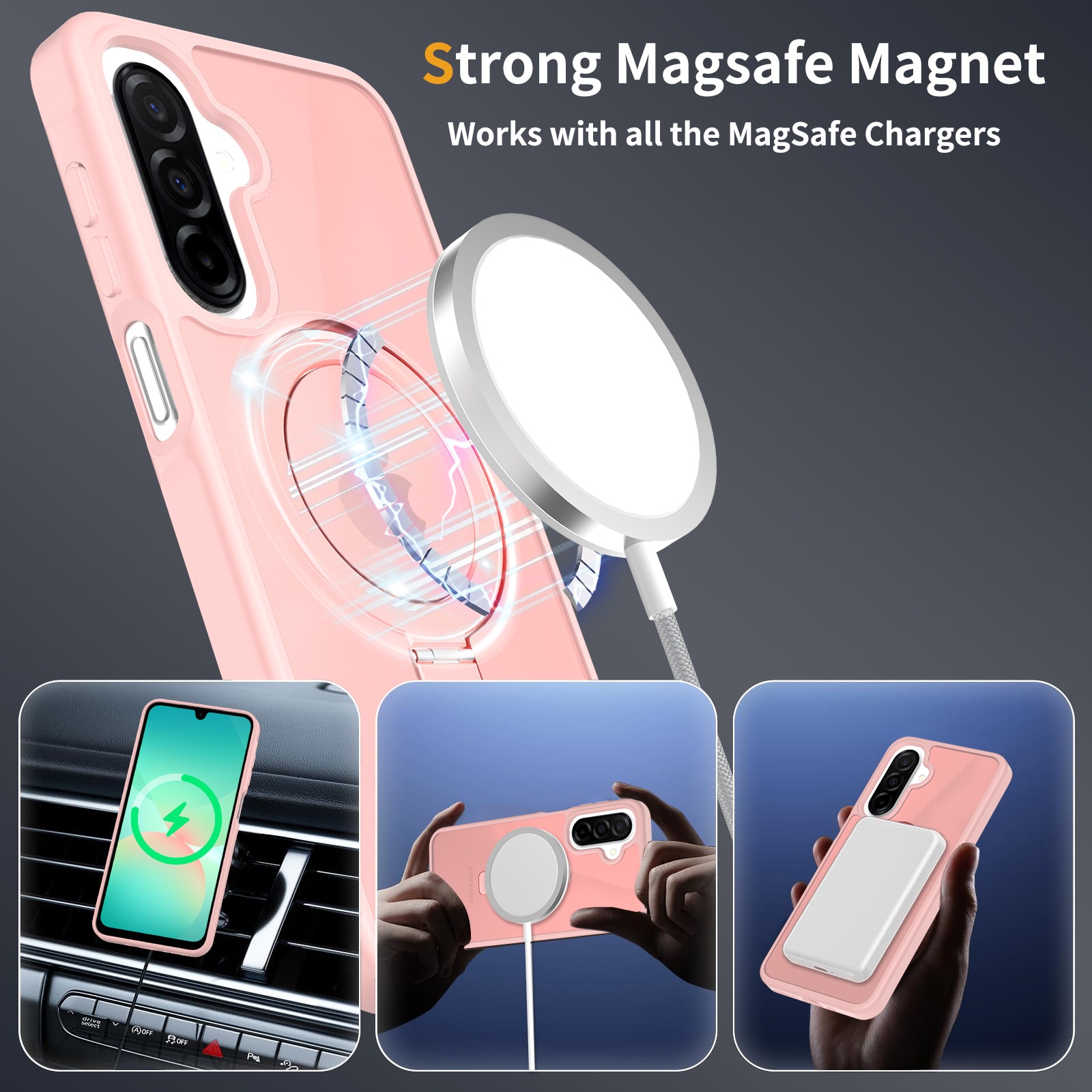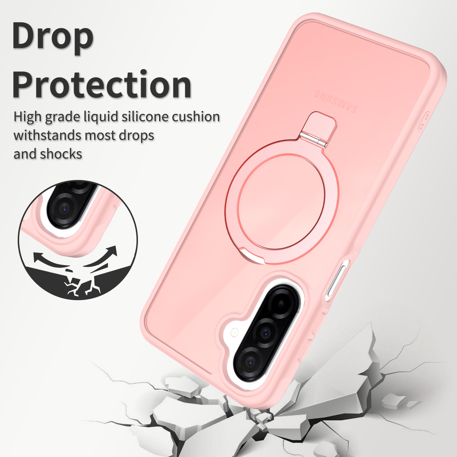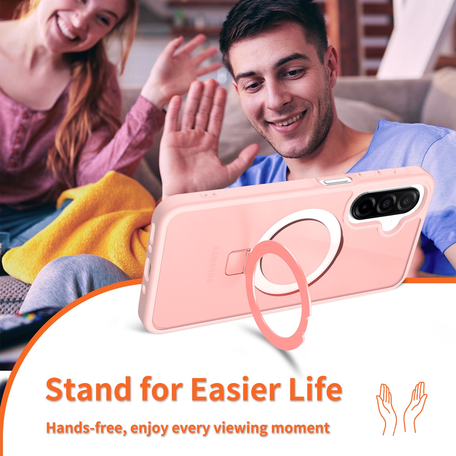 Mobilskal med utfällbar magnetisk ring till Samsung Galaxy A16. För bästa skydd mot stötar och fall är skalet tvådelat med en TPU-kärna och ett hölje i hårdplast. Ringen på baksidan är magnetisk och kan användas tllsammans med MagSafe-kompatibla tillbehör såsom laddare och korthållare. Ringen kan även bilda ett ställ för att se på film, klipp eller för att spela.