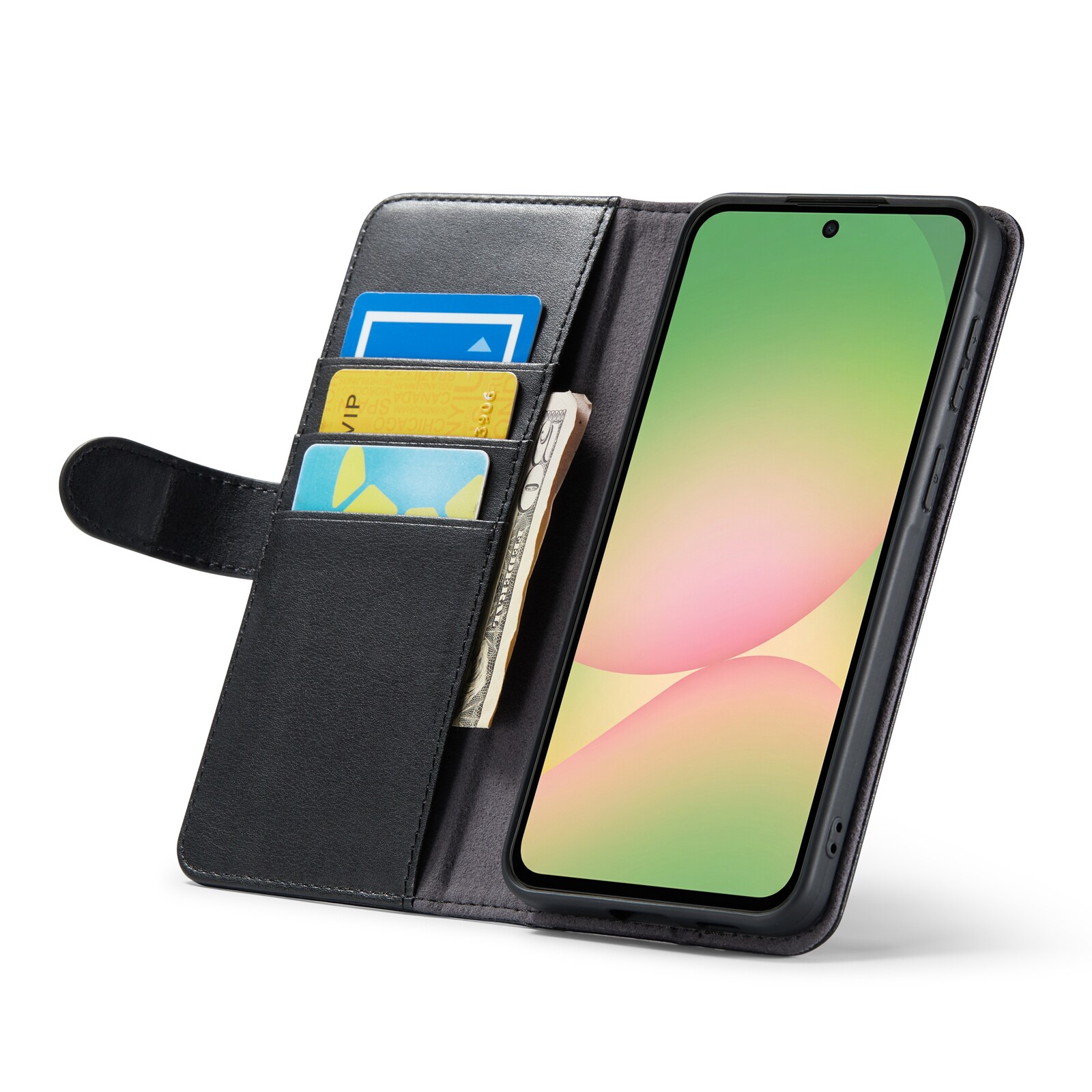 Mobilfodral i äkta läder till Samsung Galaxy A57 från Mobique. Fodralet skyddar runt hela din telefon och har en rymlig plånbok på insidan av locket. Plånboken är rymlig med tre kortfack och en sedelficka.
