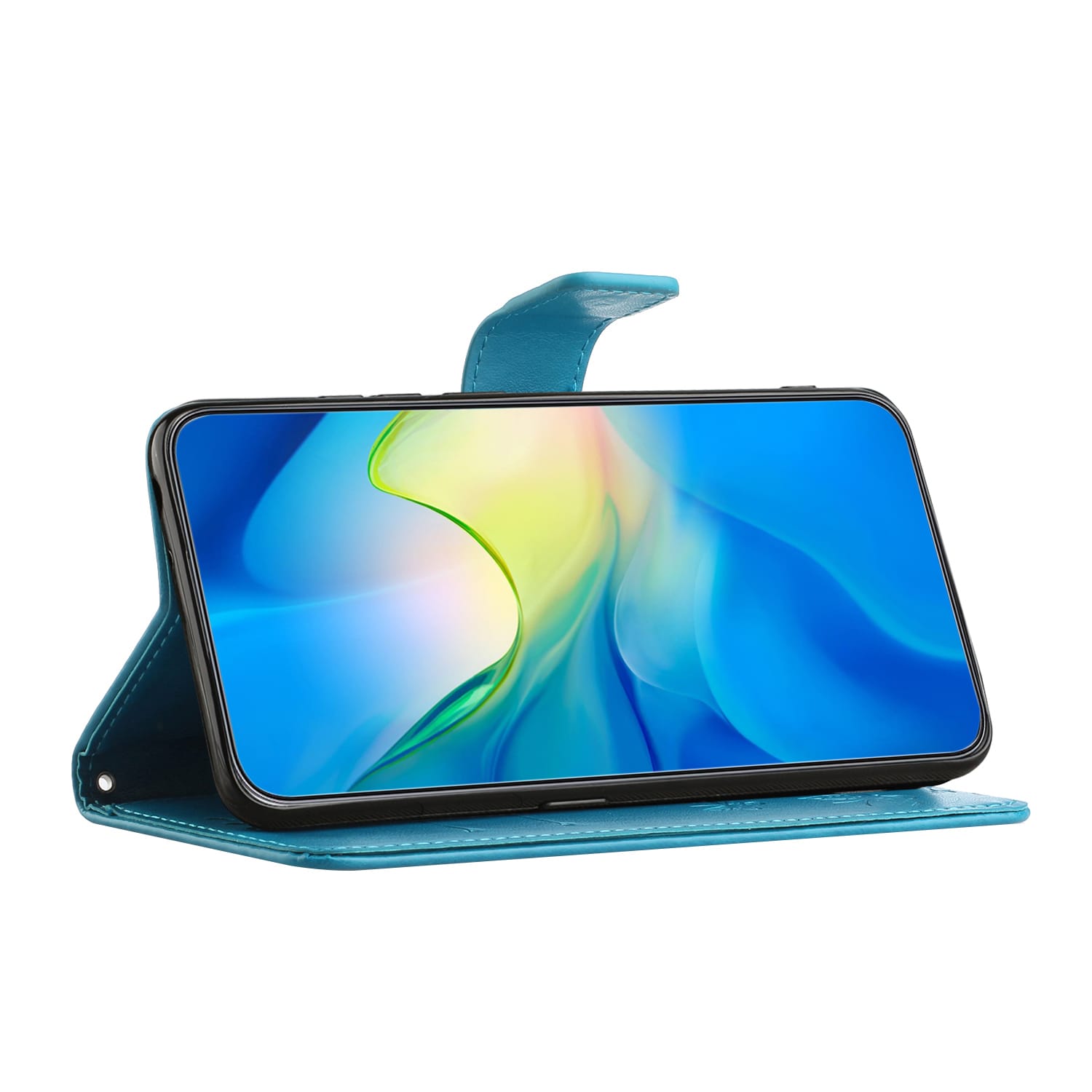 Mobilfodral med fjärilar och mönster stansat i lädret till Samsung Galaxy A57. Plånboksfodralet har ett snyggt utseende och skyddar runt om hela telefonen så att du undviker skador, repor och smuts.