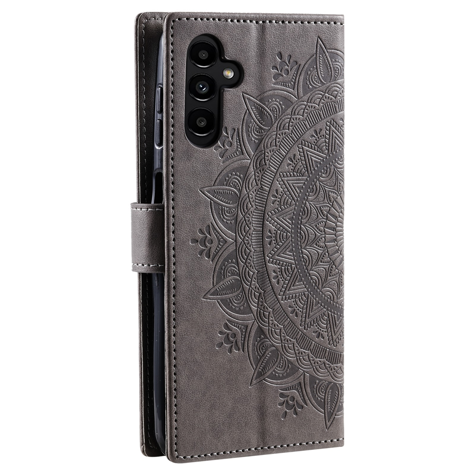 Mobilfodral med mandala och mönster stansat i lädret till Samsung Galaxy A57. Plånboksfodralet har ett snyggt utseende och skyddar runt om hela telefonen så att du undviker skador, repor och smuts.