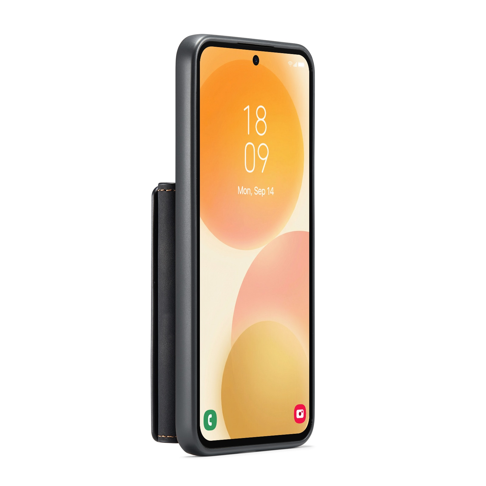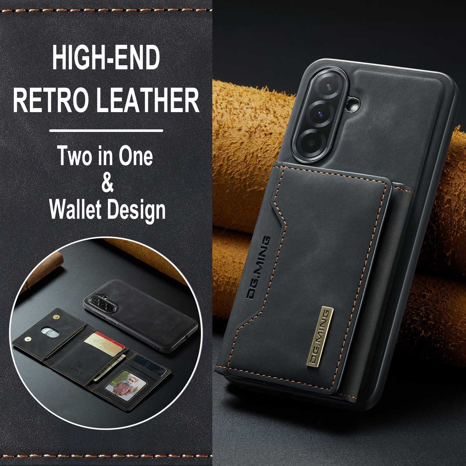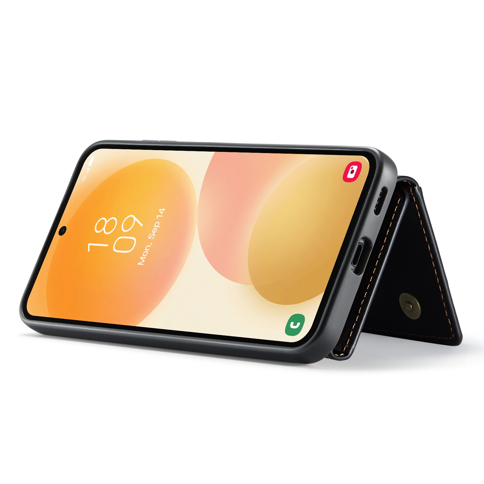 Läderskal till Samsung Galaxy A57 med tillhörande plånbok. Plånboken fästs med magneter på baksidan av skalet och kan enkelt plockas av när man inte behöver den. Genom att fälla ut plånboken så kan den även fungera som stativ så att du smidigt kan kolla på film eller videoklipp.