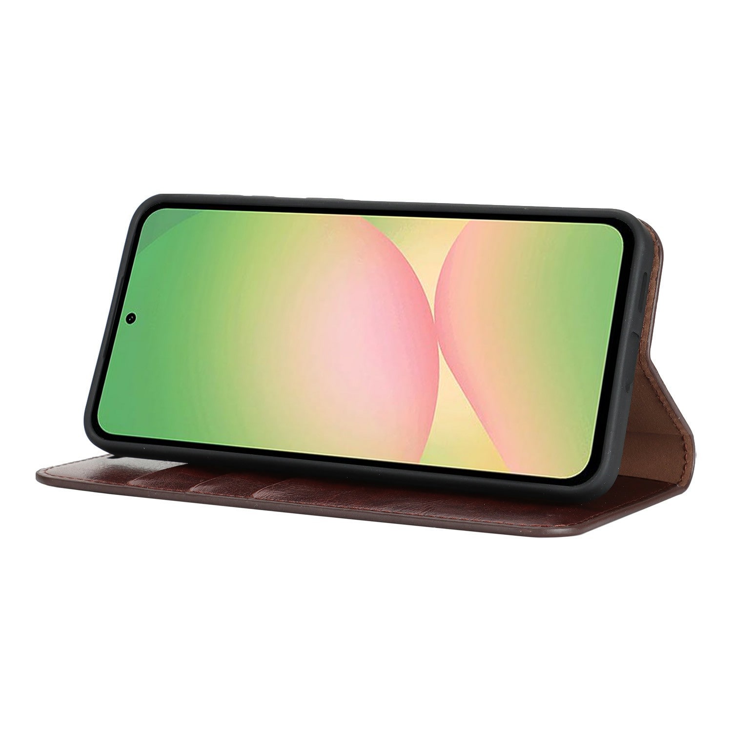 Skydda din Samsung Galaxy A57 med ett fodral i äkta läder. Trots sin tunna och smarta design har fodralet 3 stycken kortfack och 1 sedelfack på insidan av locket. Telefonen klickas i ett flexibelt skal för att sitta säkert fast i fodralet.