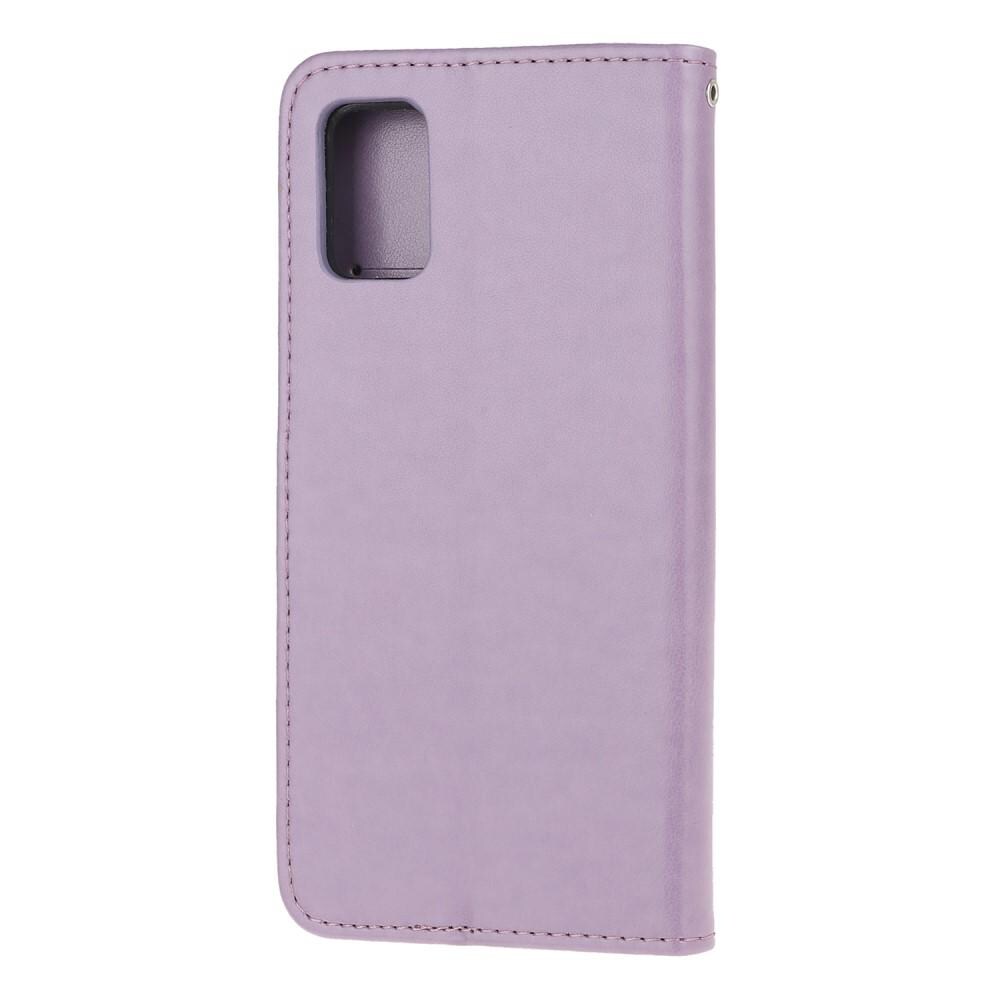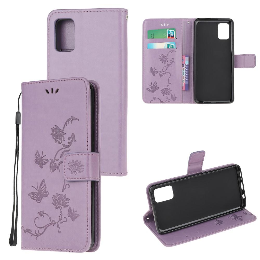 Mobilfodral med fjärilar och mönster stansat i lädret till Samsung Galaxy A72 5G. Plånboksfodralet har ett snyggt utseende och skyddar runt om hela telefonen så att du undviker skador, repor och smuts.