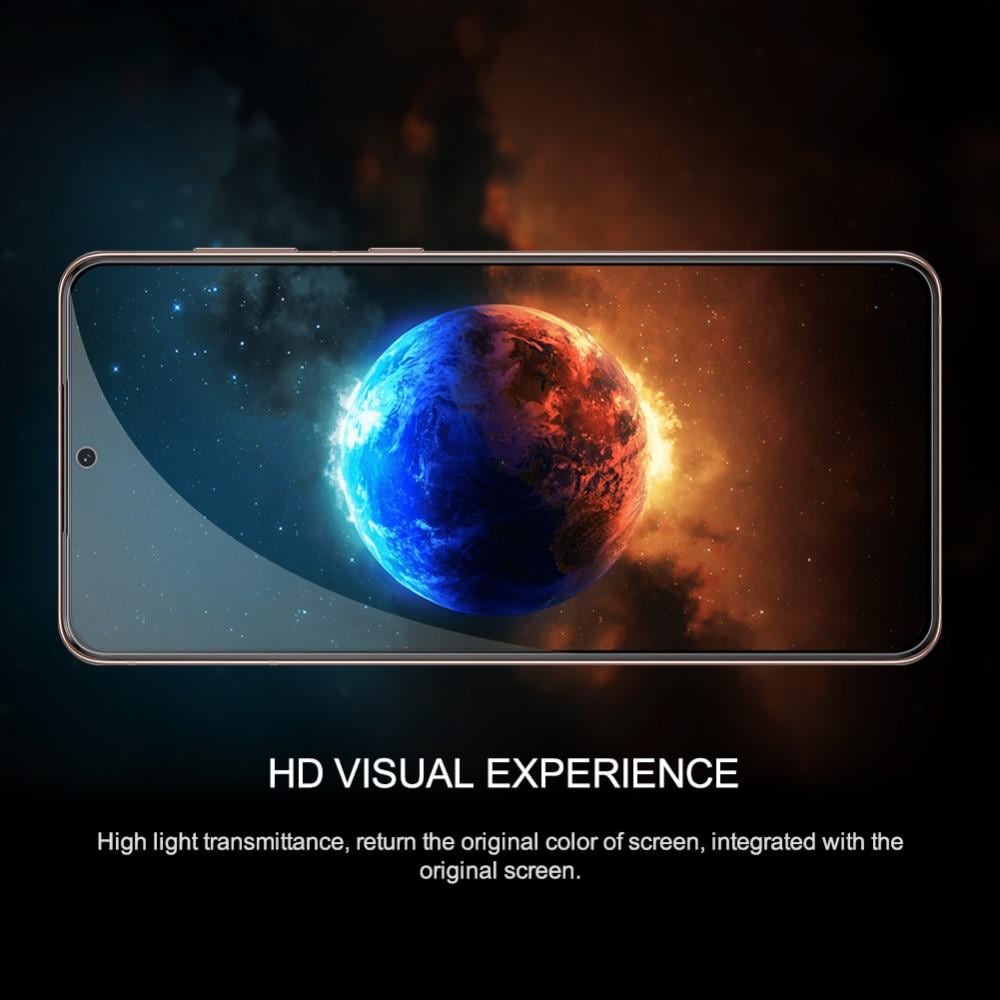 Heltäckande skärmskydd tillverkat i härdat glas till Samsung Galaxy S21 från Nillkin. Tillverkat av japanskt glas med mycket hög klarhet för att inte påverka telefonens knivskarpa skärm. Glaset är endast 0.33 mm tjockt - nästan omärkbart när det skyddar mot repor och sprickor.
