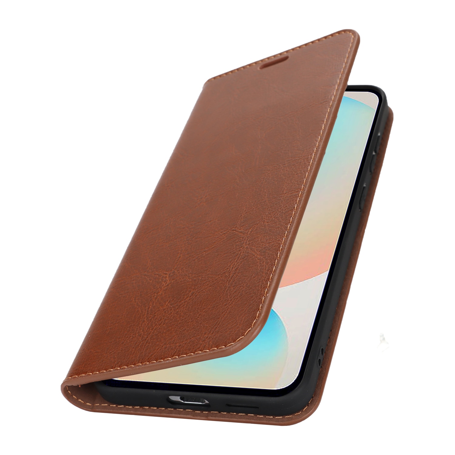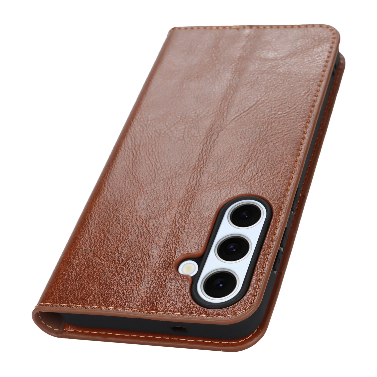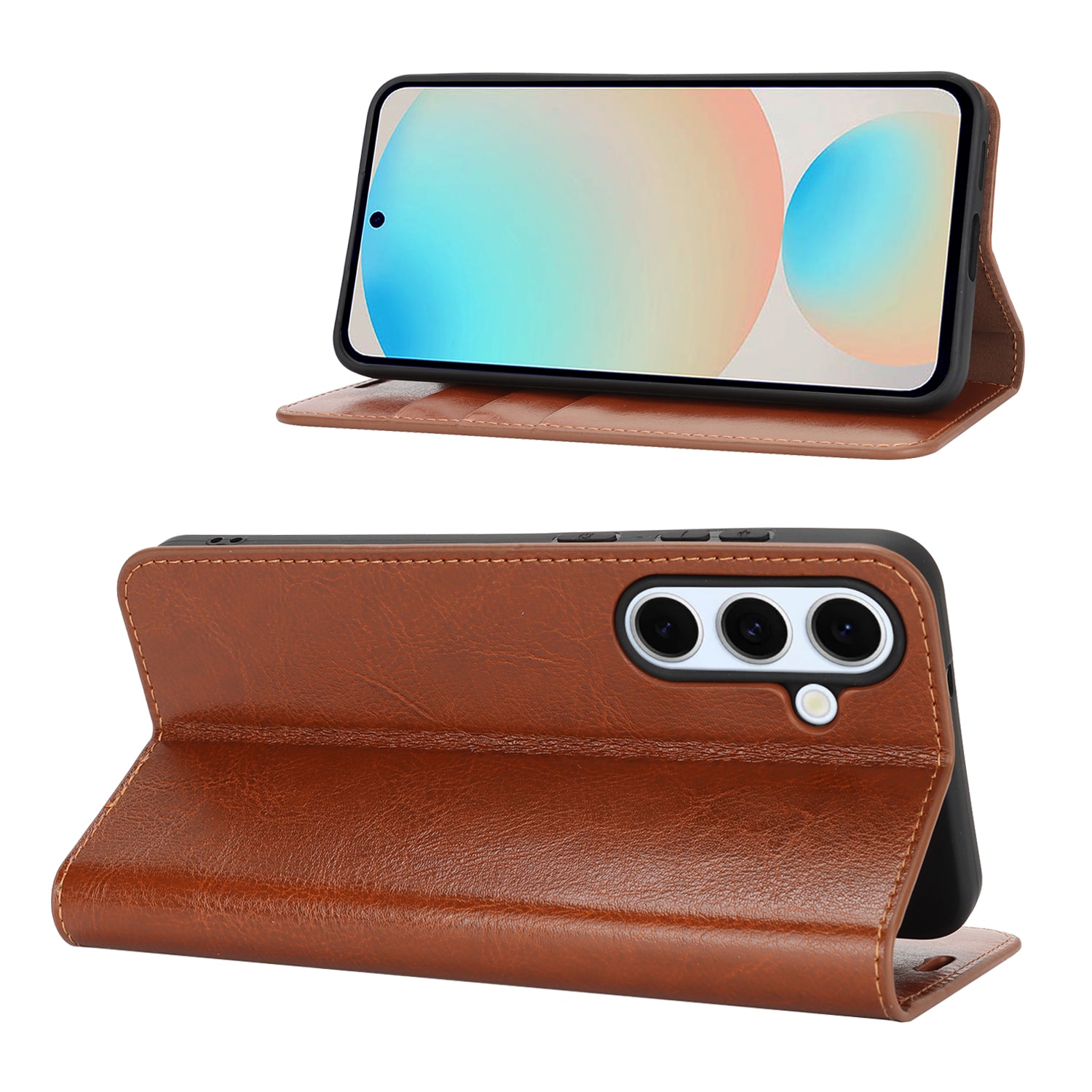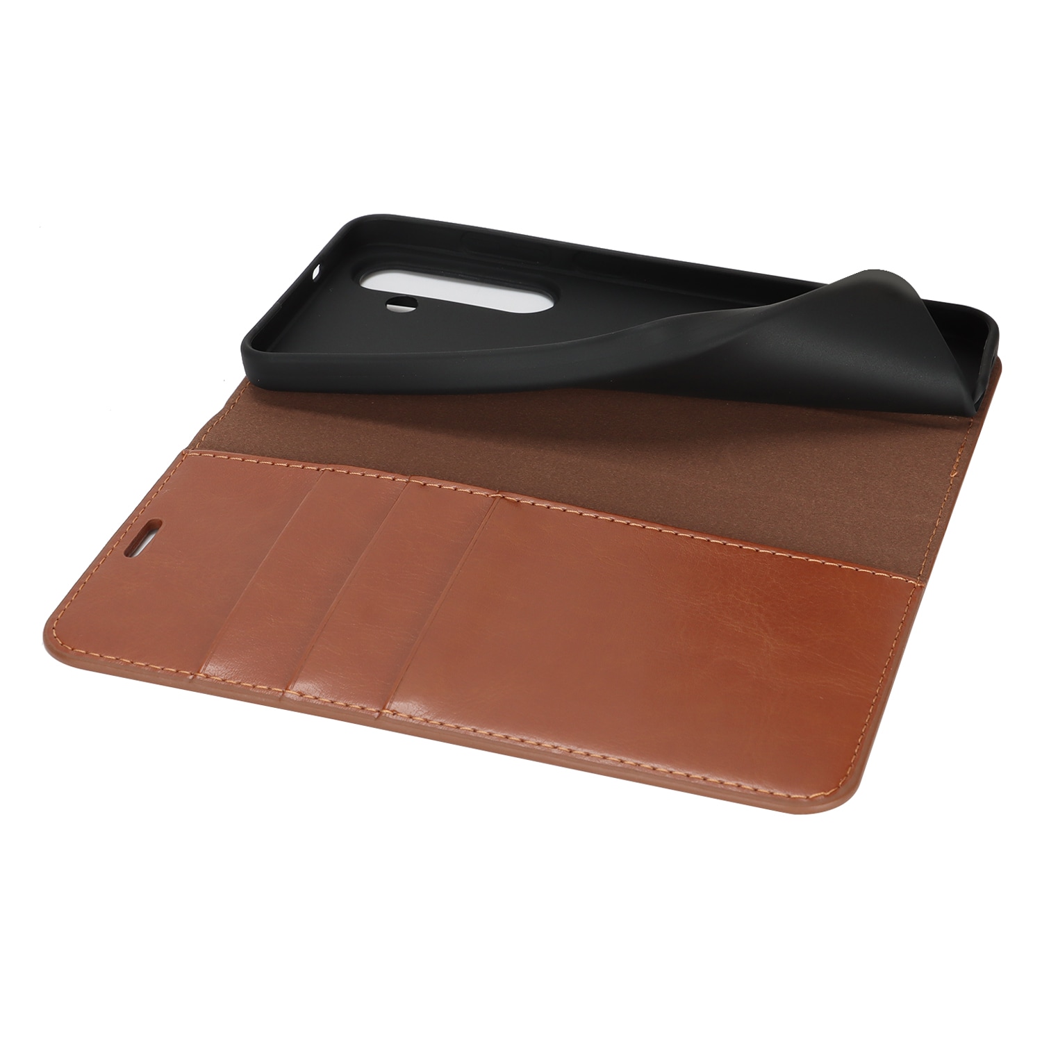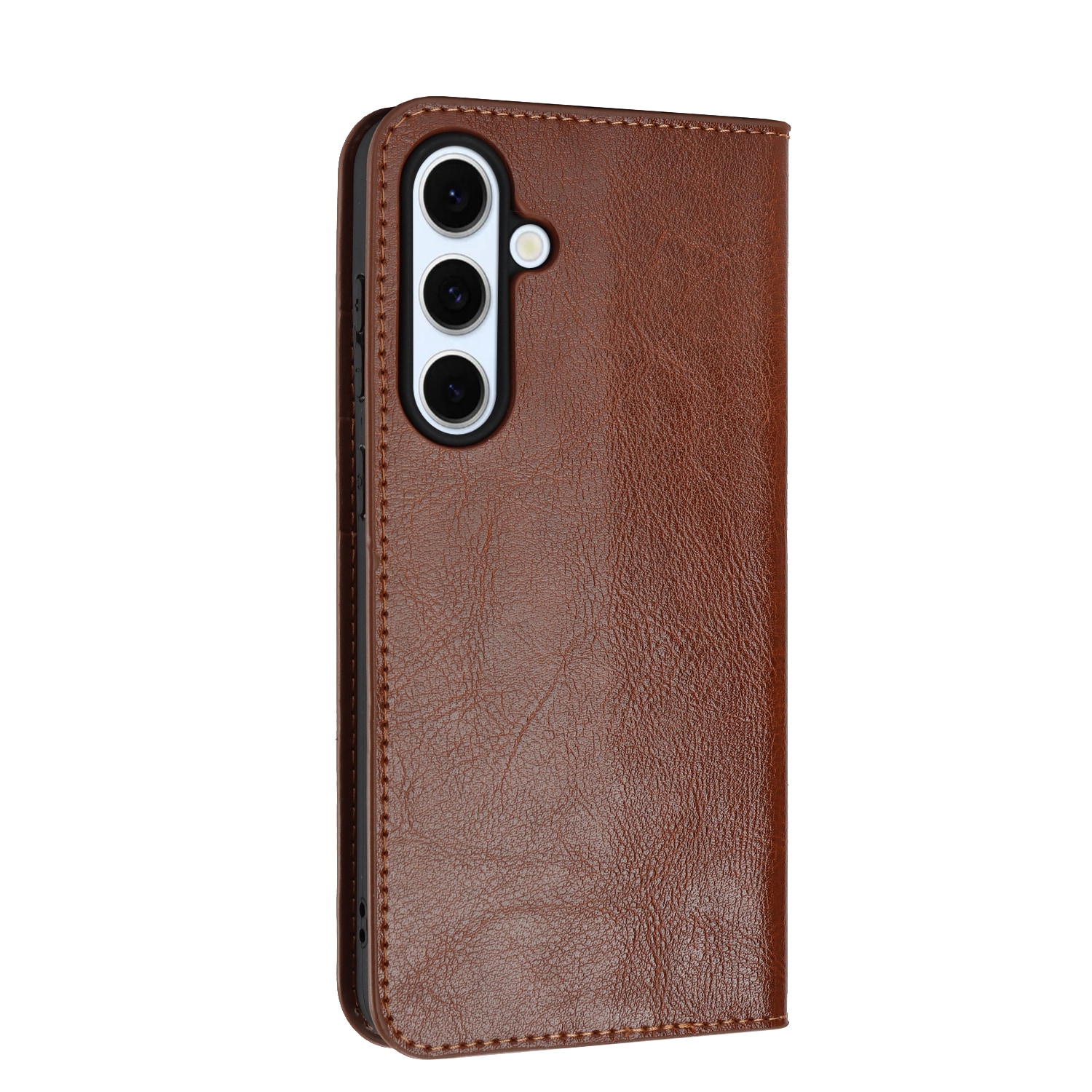 Skydda din Samsung Galaxy S25 FE med ett fodral i äkta läder. Trots sin tunna och smarta design har fodralet 3 stycken kortfack och 1 sedelfack på insidan av locket. Telefonen klickas i ett flexibelt skal för att sitta säkert fast i fodralet.