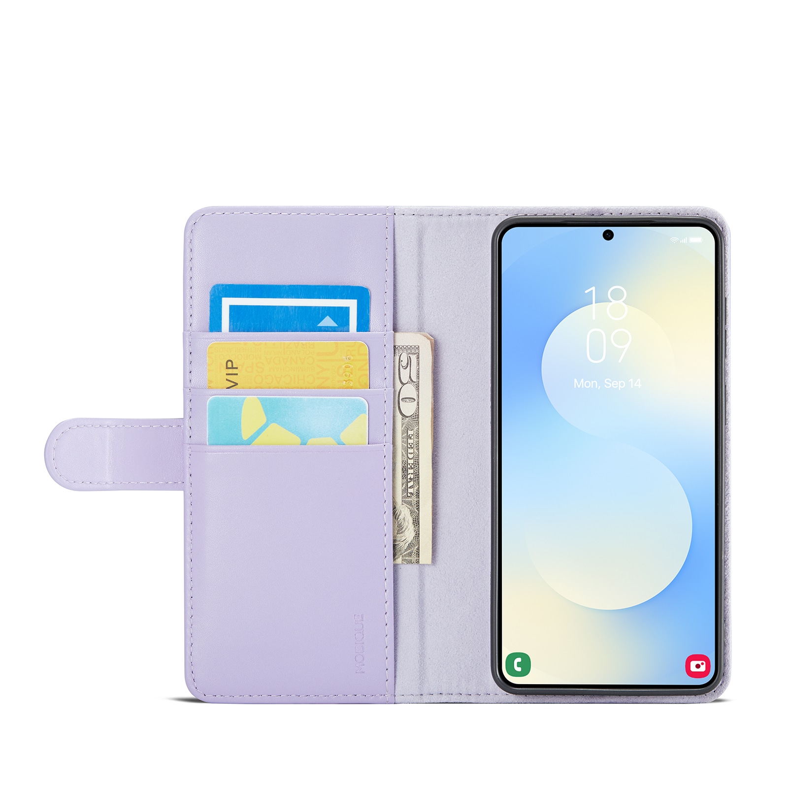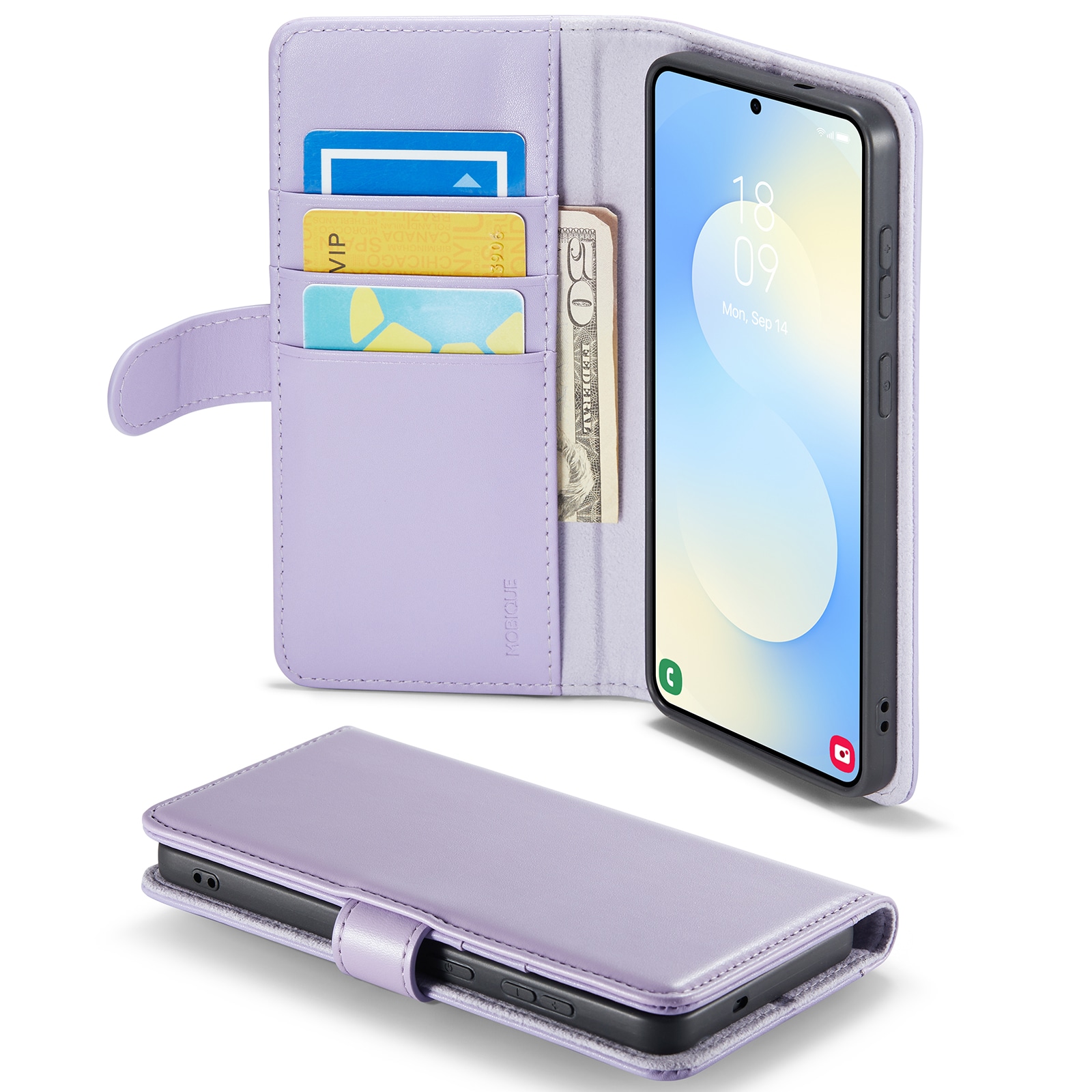 Mobilfodral i äkta läder till Samsung Galaxy S26 Plus från Mobique. Fodralet skyddar runt hela din telefon och har en rymlig plånbok på insidan av locket. Plånboken är rymlig med tre kortfack och en sedelficka.