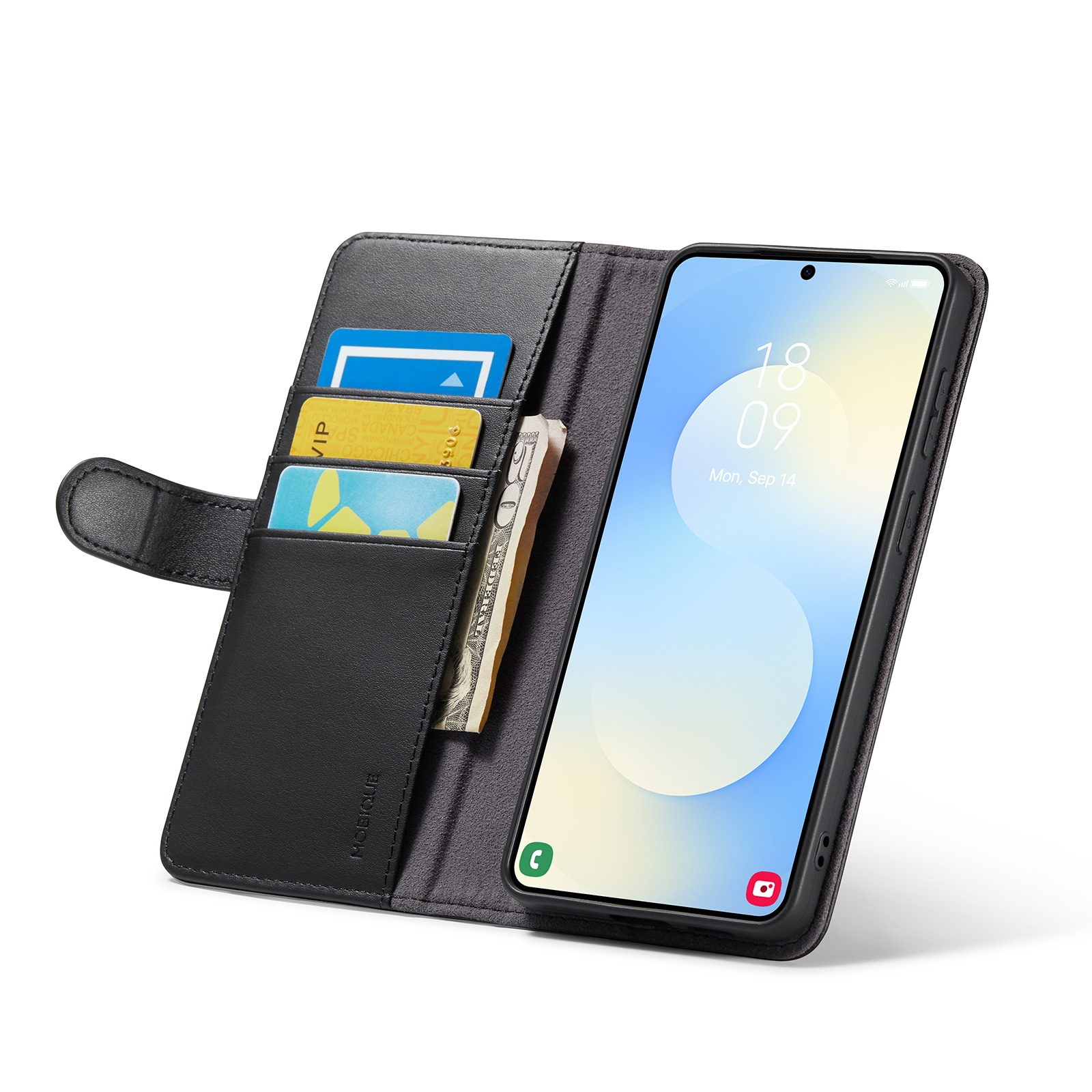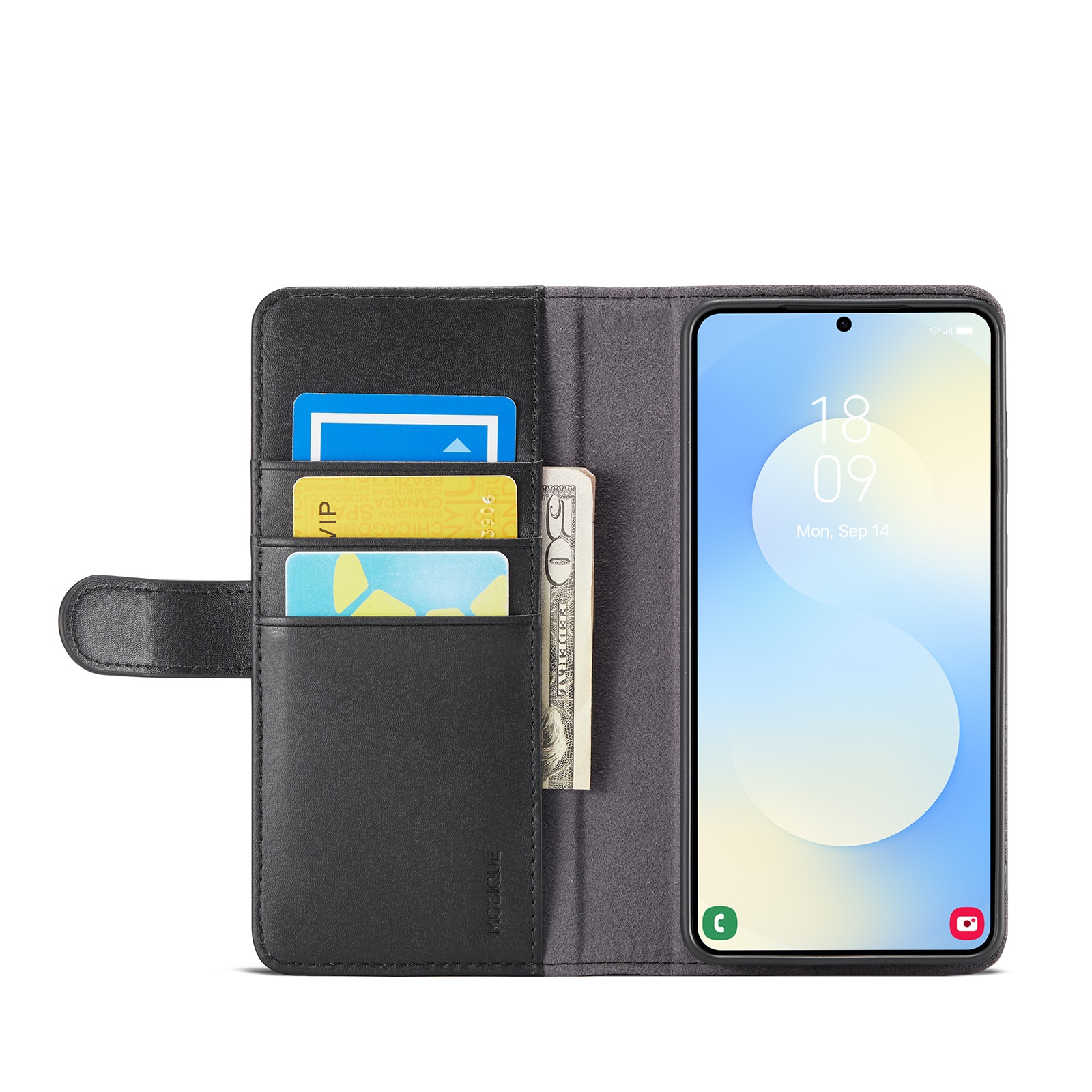 Mobilfodral i äkta läder till Samsung Galaxy S26 Plus från Mobique. Fodralet skyddar runt hela din telefon och har en rymlig plånbok på insidan av locket. Plånboken är rymlig med tre kortfack och en sedelficka.