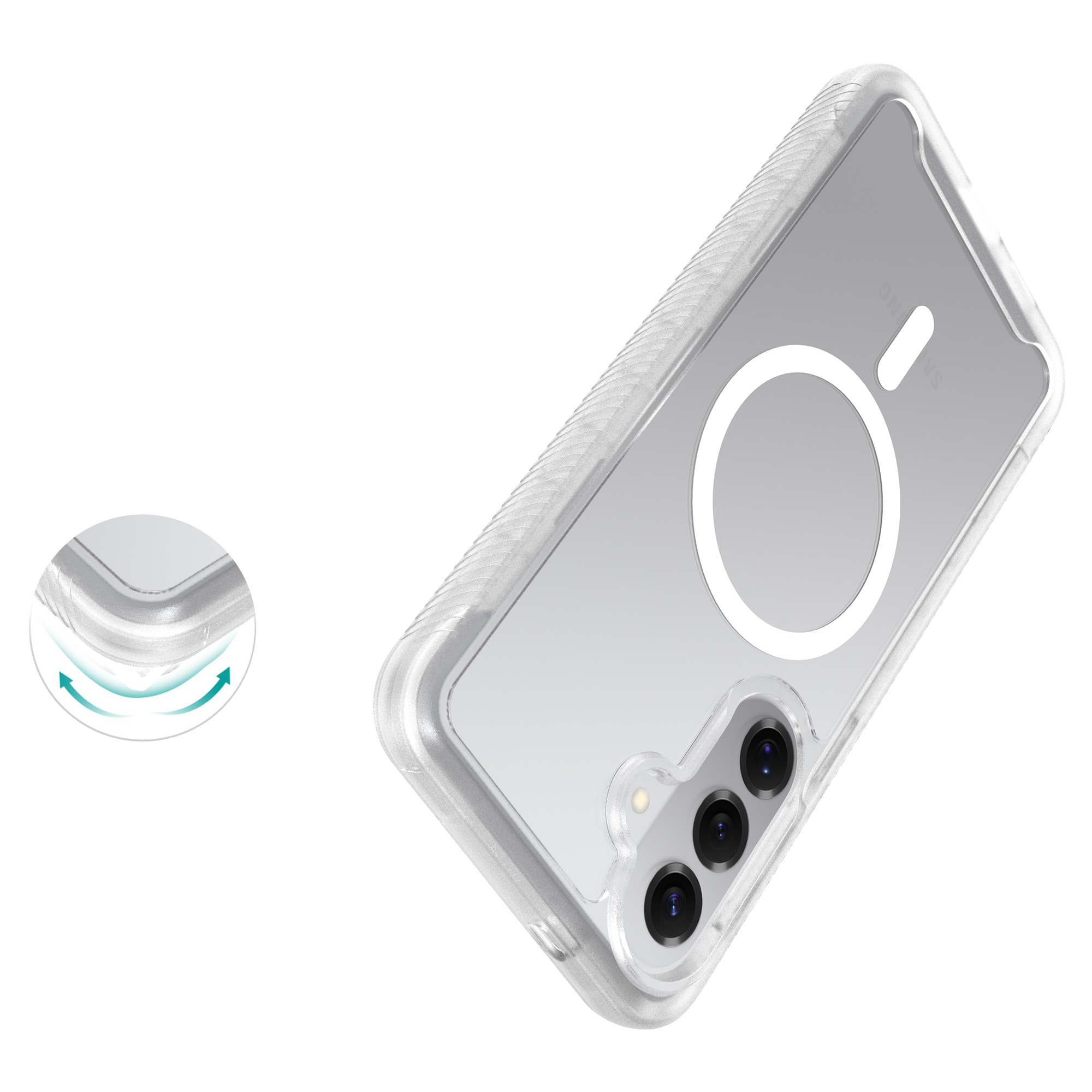 Skalet har upphöjda kanter runt kameran som effektivt skyddar mot repor och sprickor. Den magnetiska ringen gör att skalet fäster perfekt vid MagSafe-laddare och tillbehör, så att laddning och användning alltid är smidig.