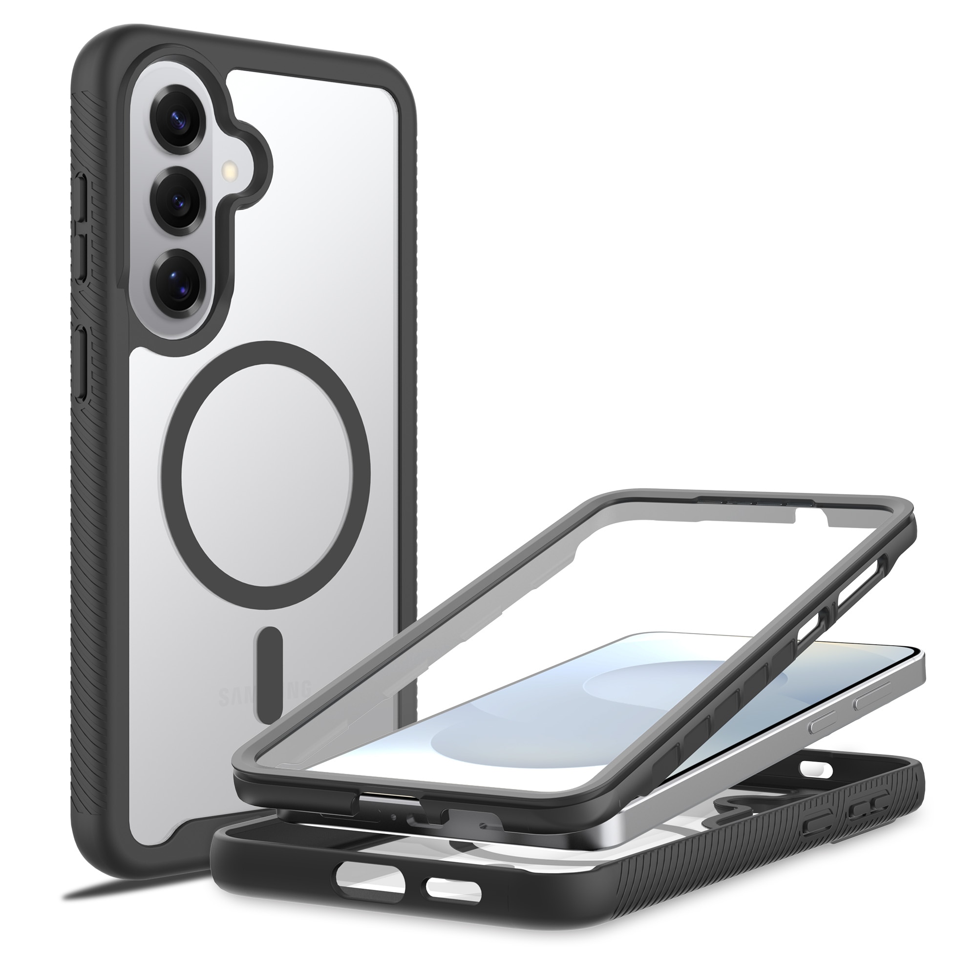 Skydda din Samsung Galaxy S26 Plus med detta heltäckande och magnetiska skal som ger din telefon optimalt skydd från alla håll. Den tvådelade konstruktionen har ett främre lager med inbyggt skärmskydd som skyddar hela framsidan, medan det bakre lagret skyddar mot stötar och slitage.