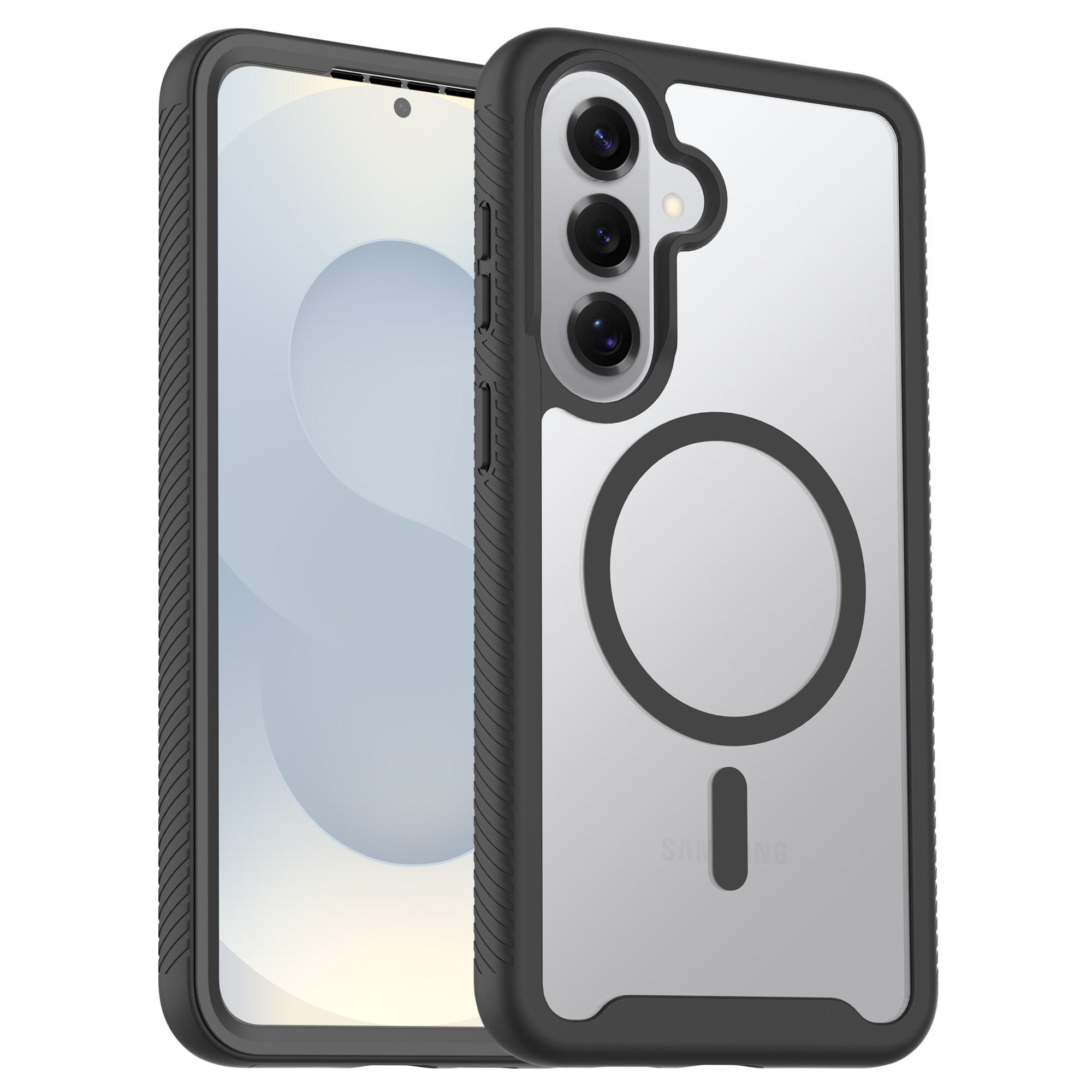 Skalet har upphöjda kanter runt kameran som effektivt skyddar mot repor och sprickor. Den magnetiska ringen gör att skalet fäster perfekt vid MagSafe-laddare och tillbehör, så att laddning och användning alltid är smidig.